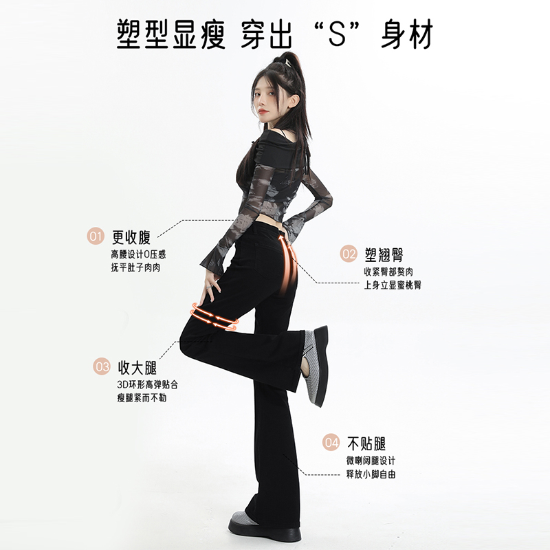 女加绒紧身喇叭裤 乔栈秋冬爆款 美人鱼双V收腰弹力大摆微喇牛仔裤