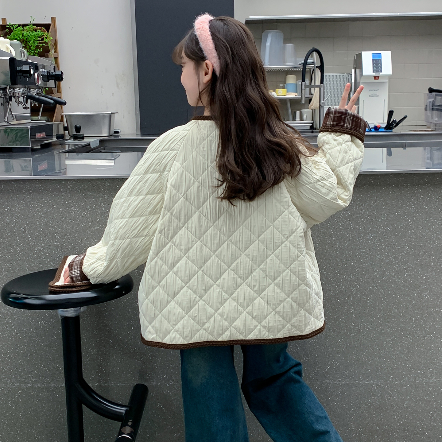 外套女夹棉棉袄子 潮秋冬季 韩系菱格短款 羽绒棉衣棉服女2025年新款