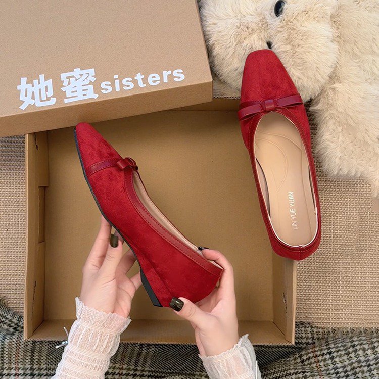 平底单鞋 防滑方头豆豆鞋 女秋冬季 时尚 百搭一脚蹬玛丽珍鞋 简约法式