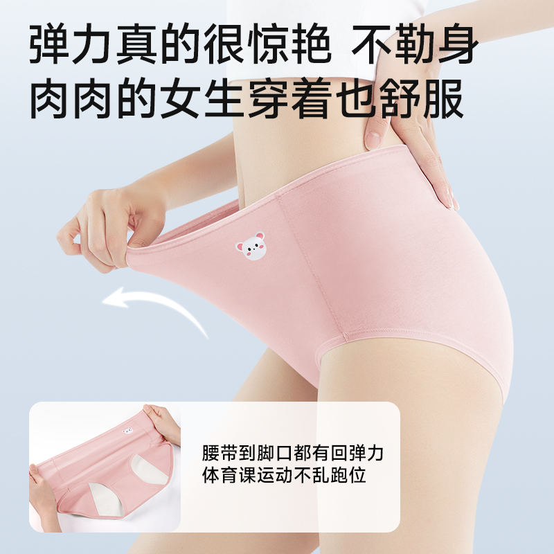 女生纯棉抗菌加长档不夹臀学生平角裤 猫人纯棉女士内裤 女2025新款