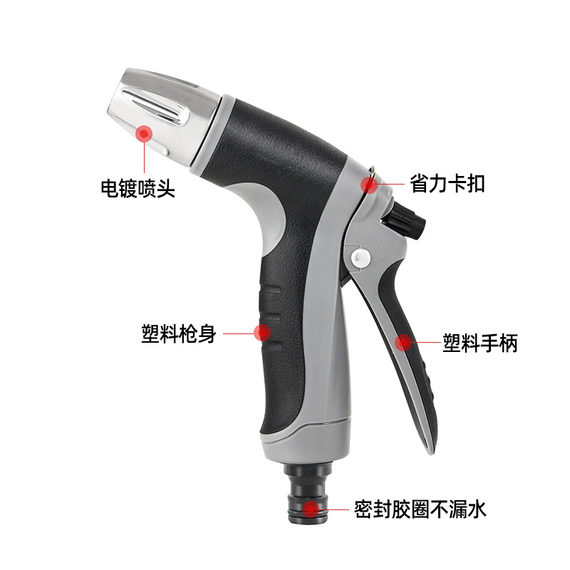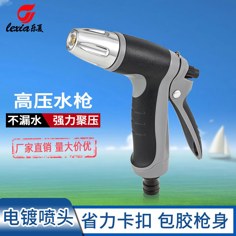 乐夏源头厂家热卖 灰色包胶高压洗车水枪多功能水枪园林浇花工具