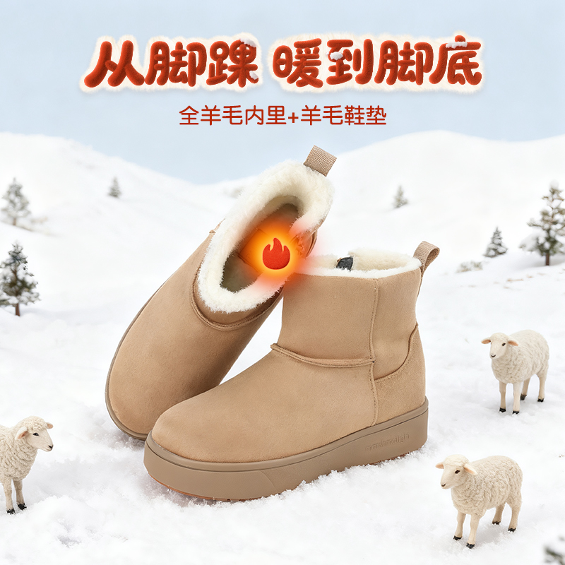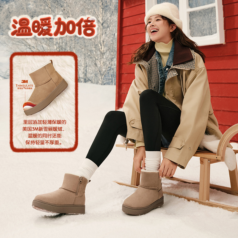 女鞋 Pansy盼喜日本雪地靴加绒加厚轻便保暖羊毛短靴棉鞋 高帮冬季