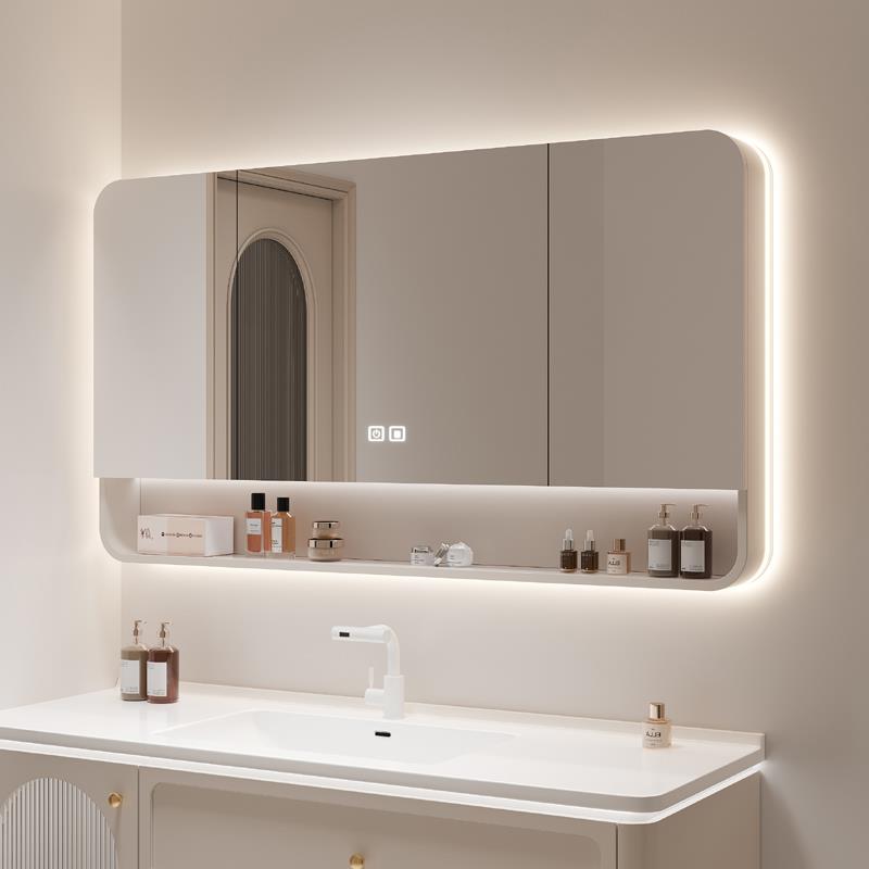 橡木烤漆单独圆角浴室智能镜柜卫生间挂墙式 圆弧收纳储物镜箱定制