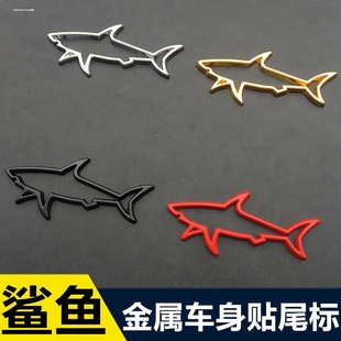 车标 汽车金属贴鲨鱼金属装 改装 鲨鱼镂空个性 锌合金车贴@ 饰贴标