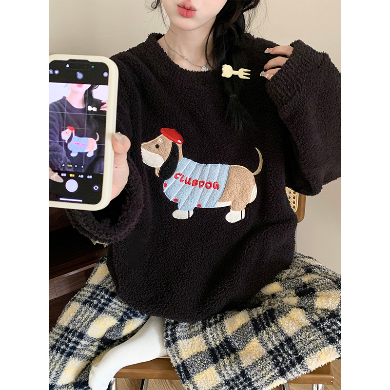 家居服套装 半边绒睡衣女秋冬季 保暖加厚可爱少女士圆领珊瑚绒冬款
