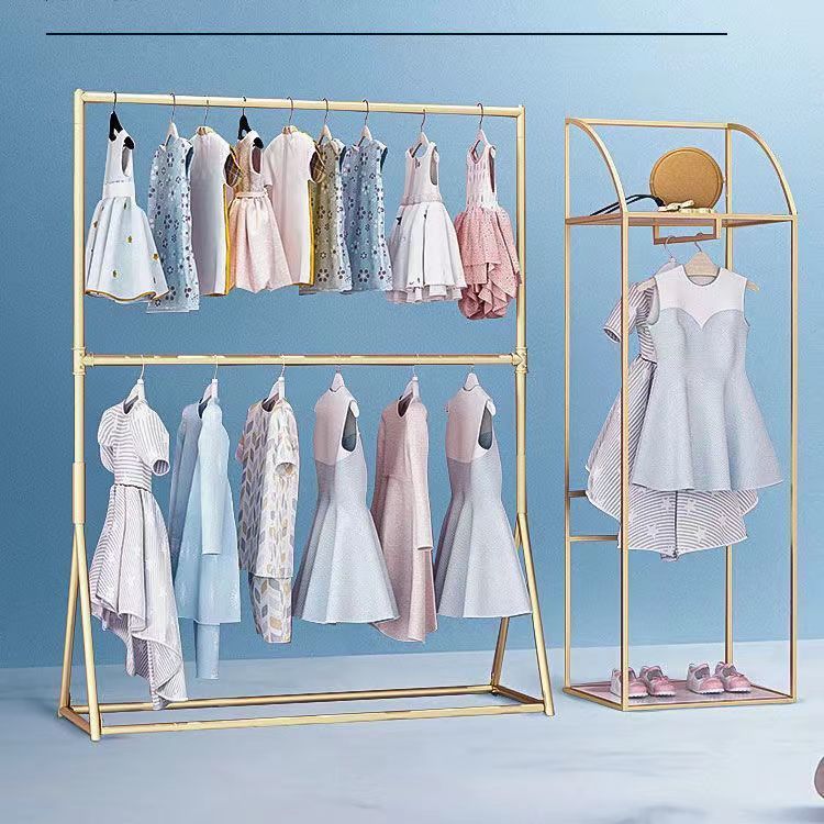 店展示架男女装 店金色挂衣架童装 店衣架 架服装 双层可升降调节服装