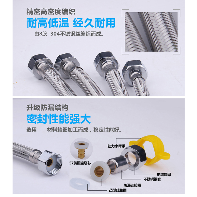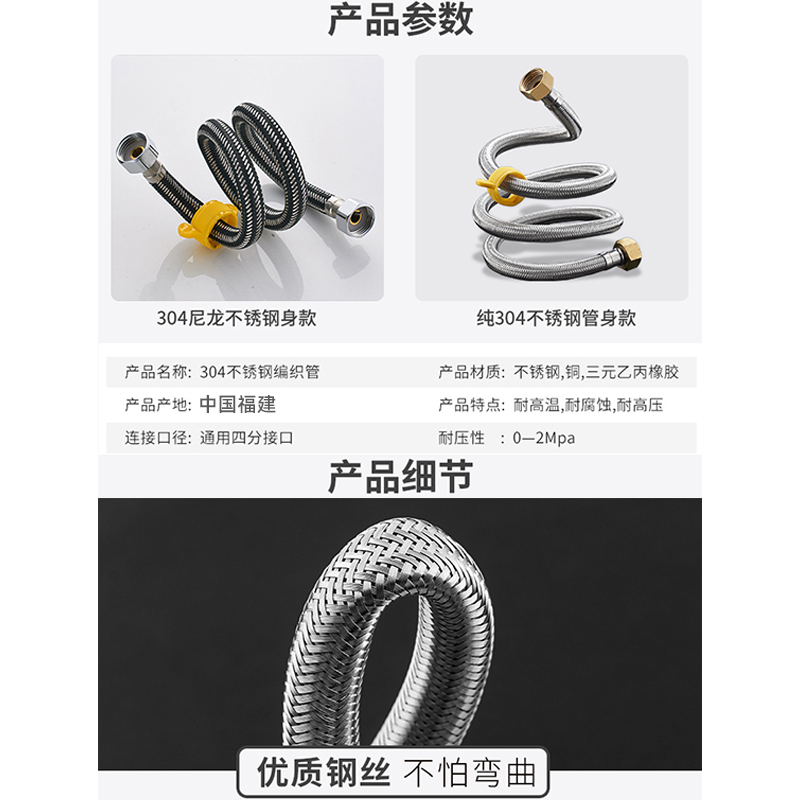 304不锈钢编织进水软管4分马桶热水器连接管防爆高压家用冷热四分