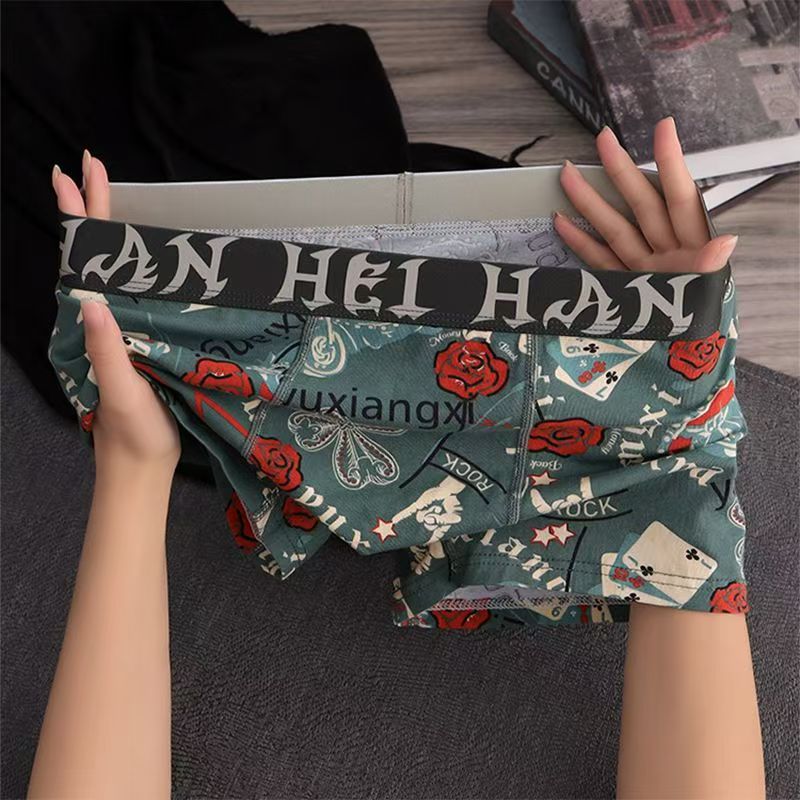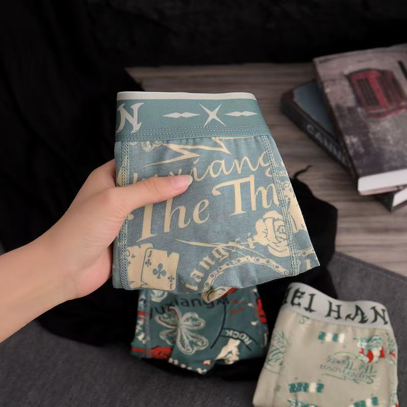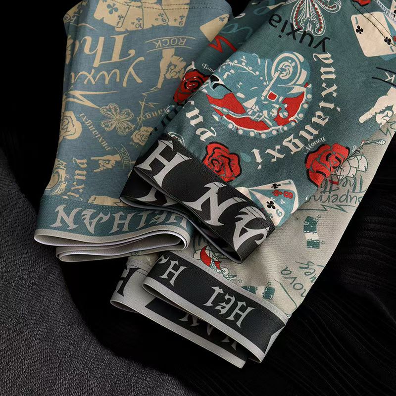 潮流运动男生平角裤 内裤 个性 爆款 头 纯棉卡通新款 网红四角短裤 男士