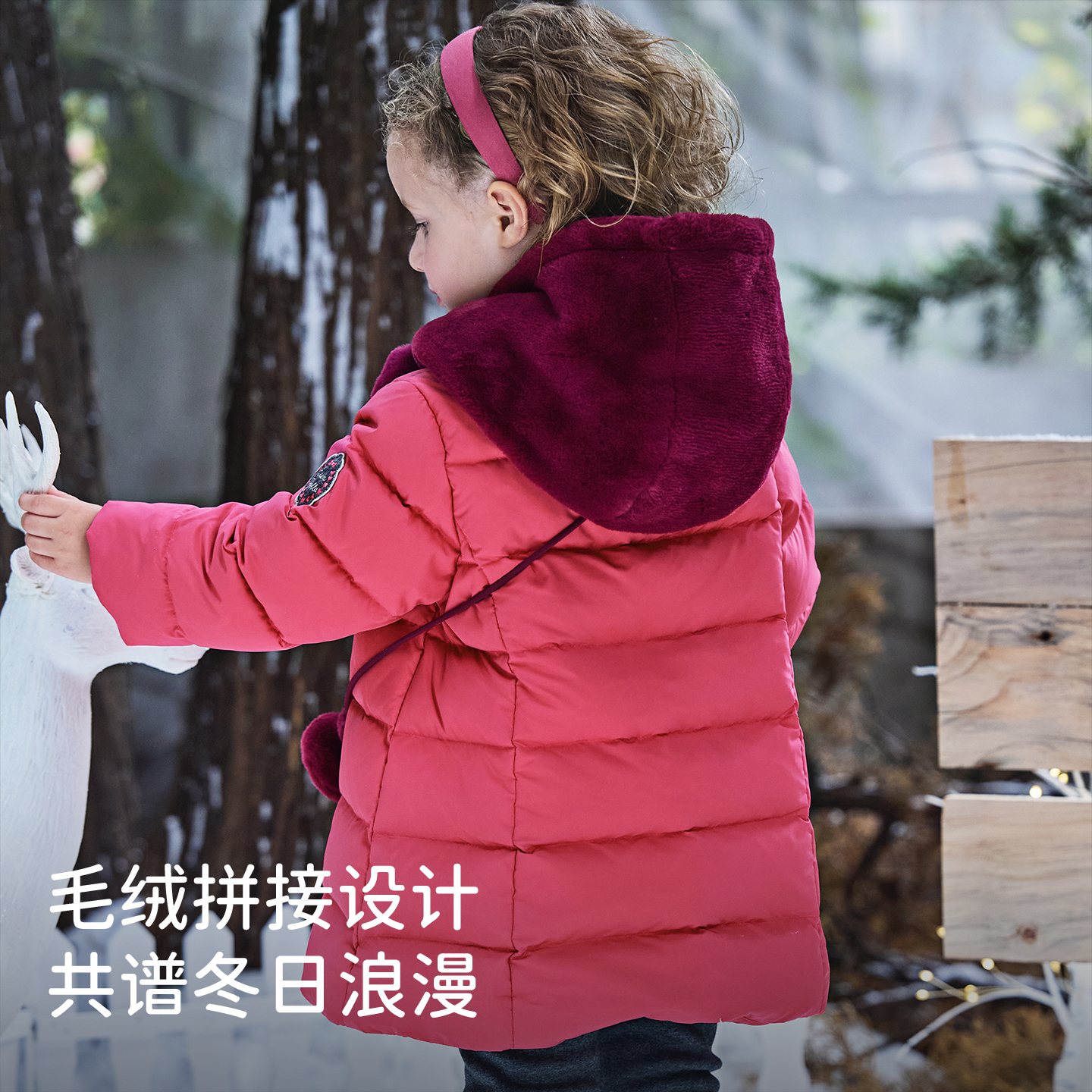 羽绒服冬装 戴维贝拉儿童中长款 女童三防连帽加绒外套 双11预售