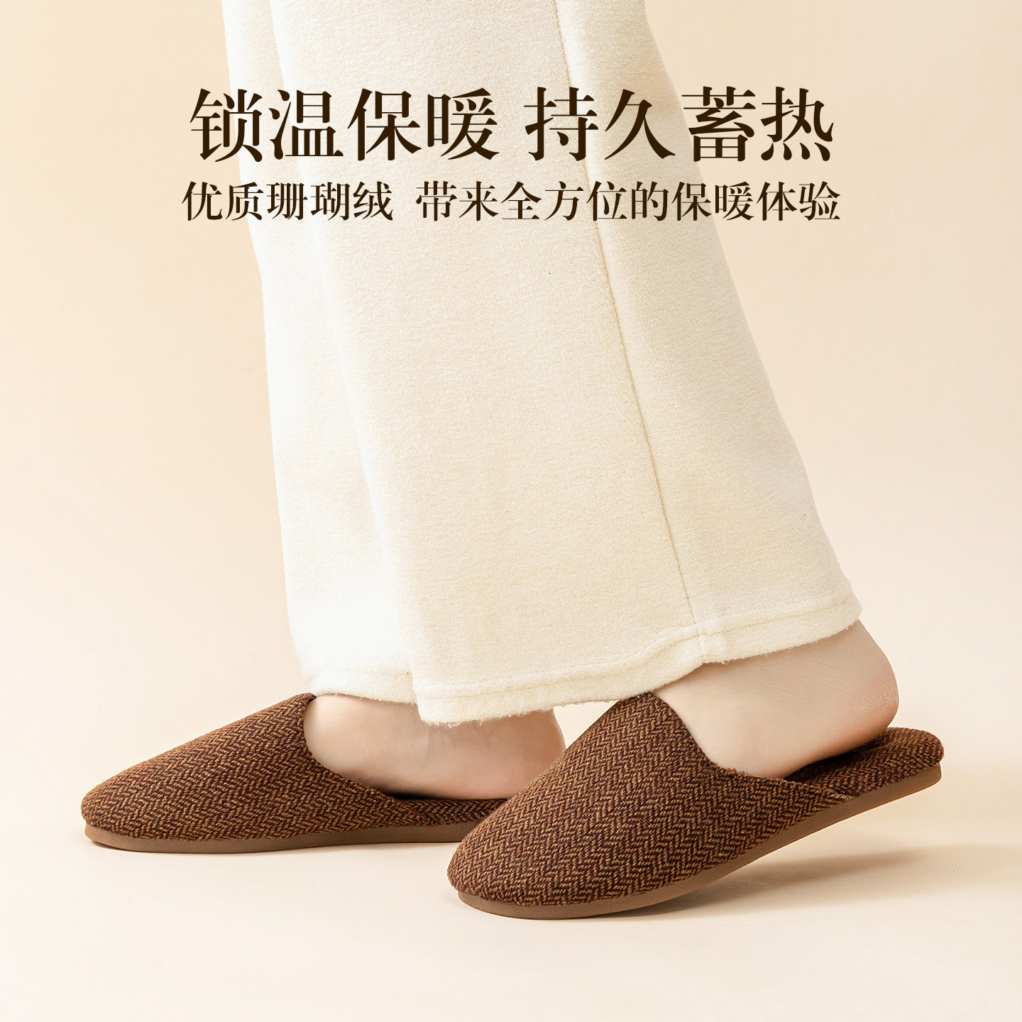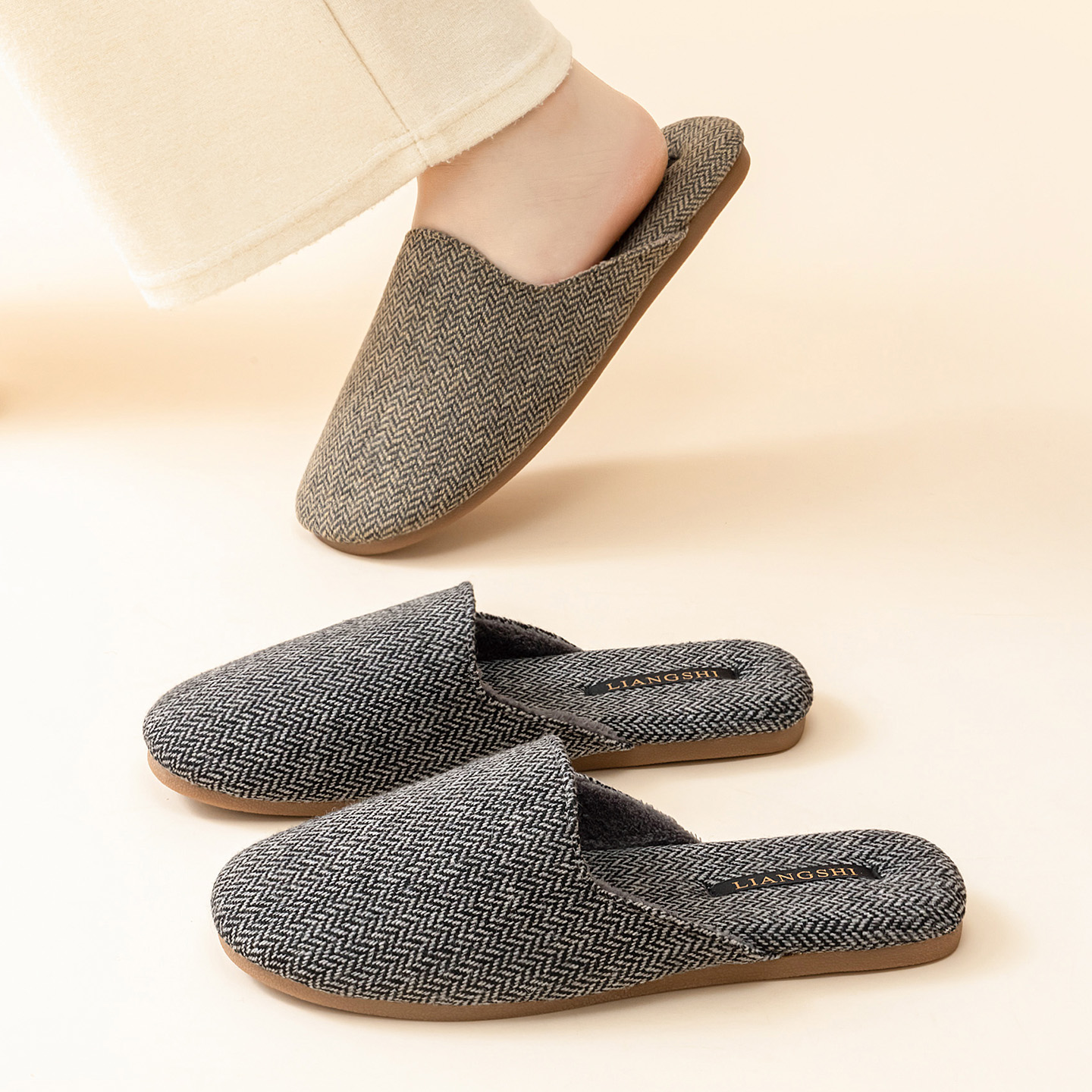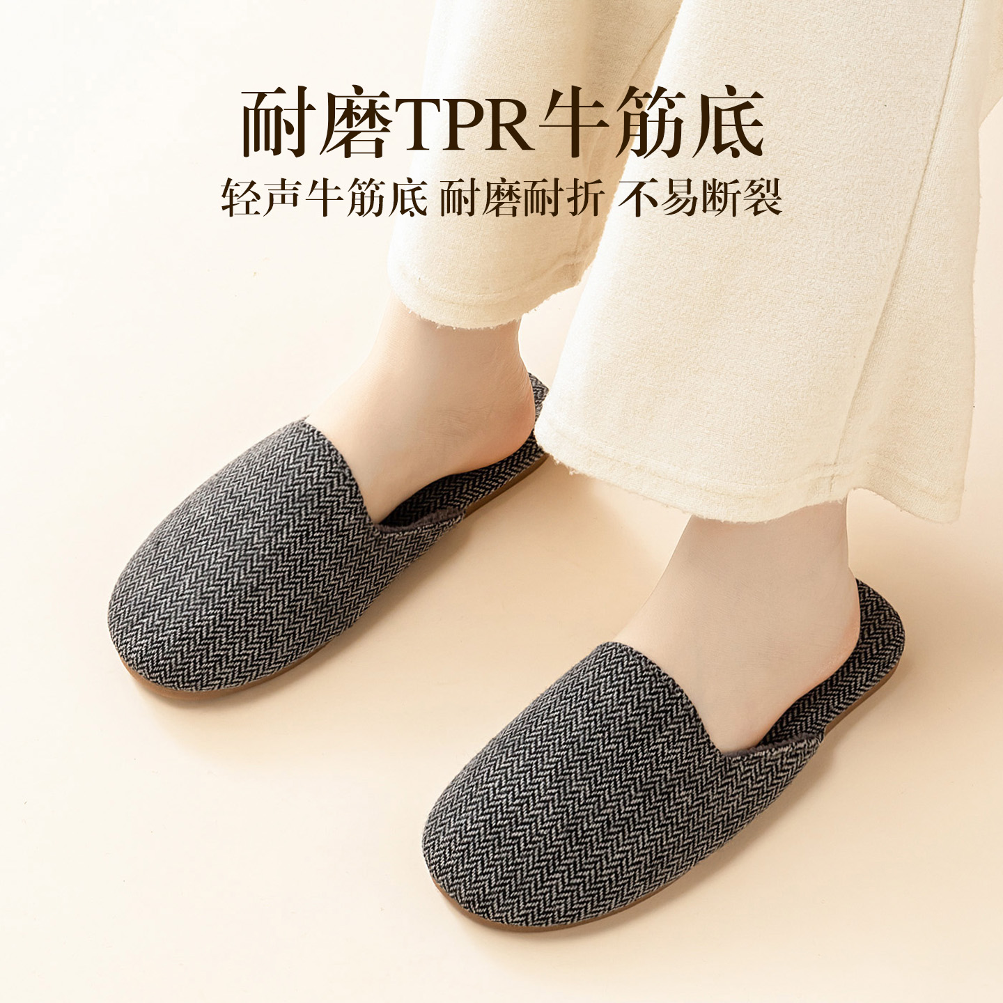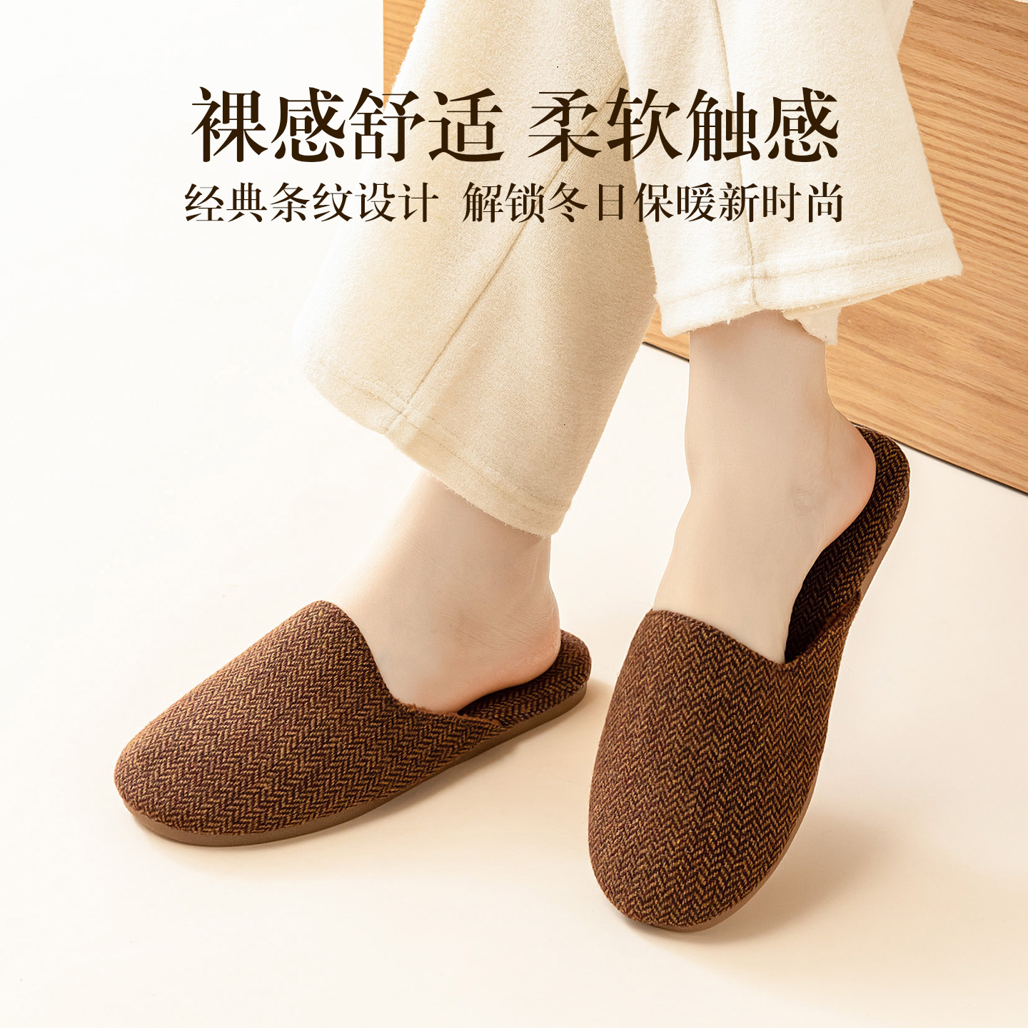 牛筋底防滑家用拖鞋 秋季 女室内居家条纹棉拖鞋 简约家居拖鞋 男 新款