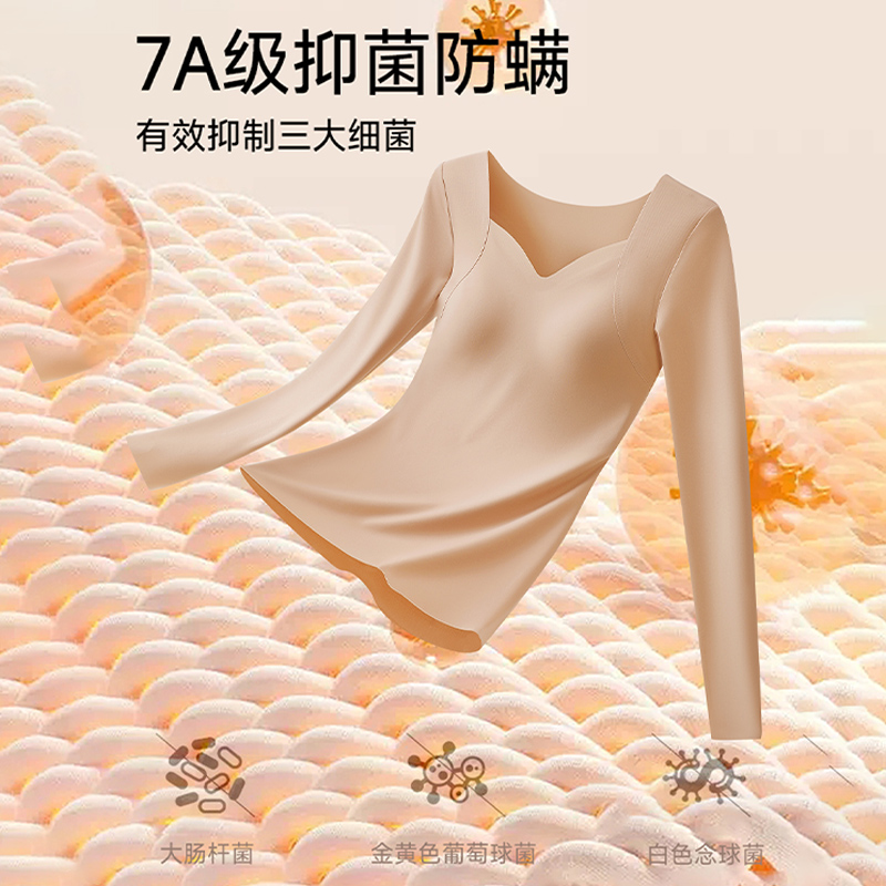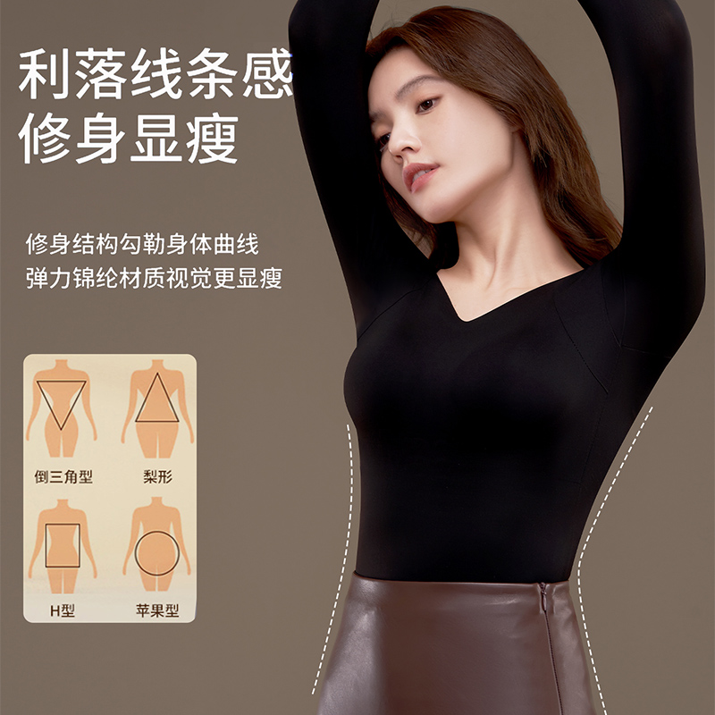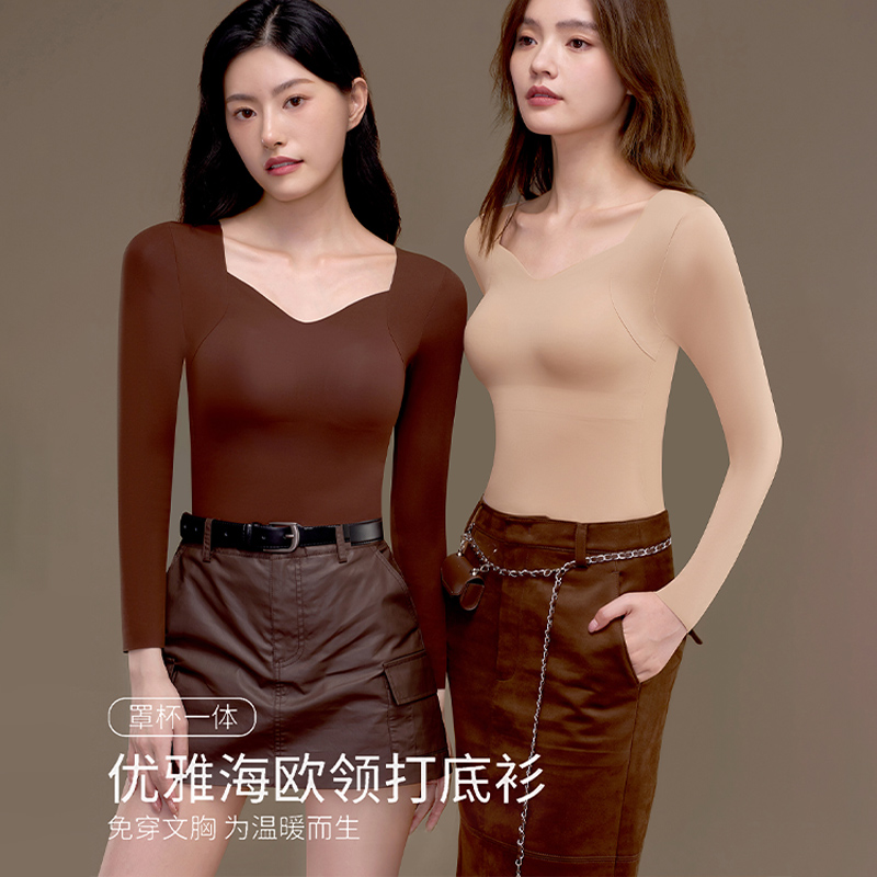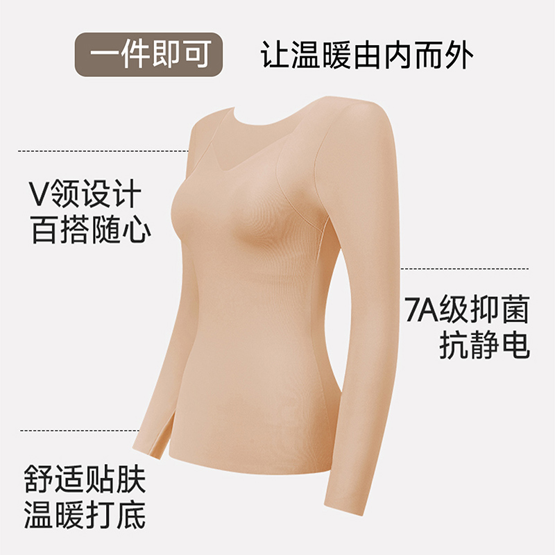 草本初色保暖内衣女士内搭长袖 秋冬带胸垫 秋衣发热加绒无痕打底衫