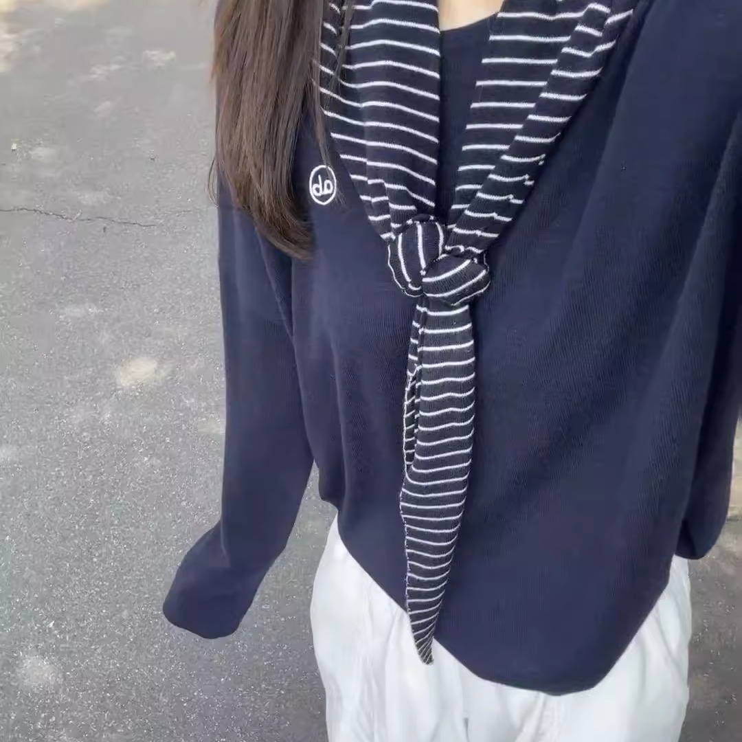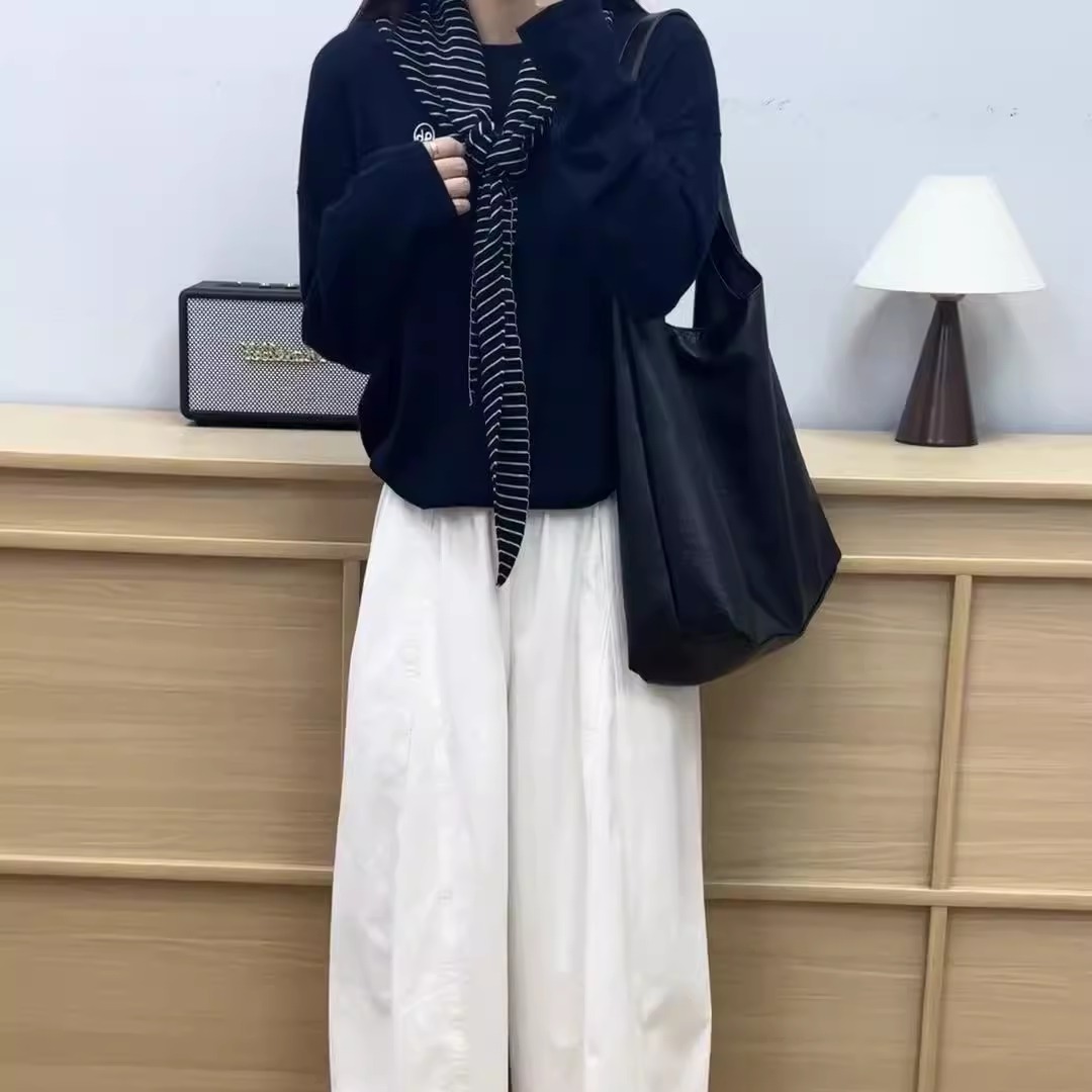 两件套ins秋季 搭配休闲百搭高腰阔腿裤 显瘦松弛感披肩针织衫 韩版
