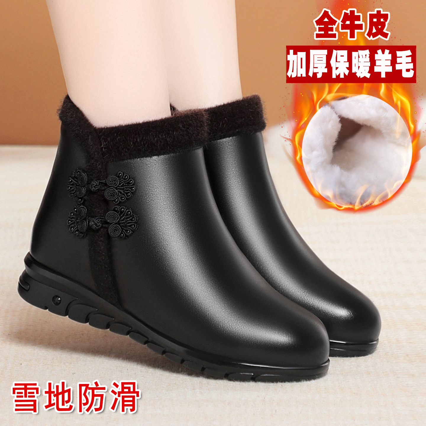 软底防滑老人鞋 中老年妈妈棉鞋 加厚棉靴子真皮羊毛皮鞋 女鞋 子 冬季