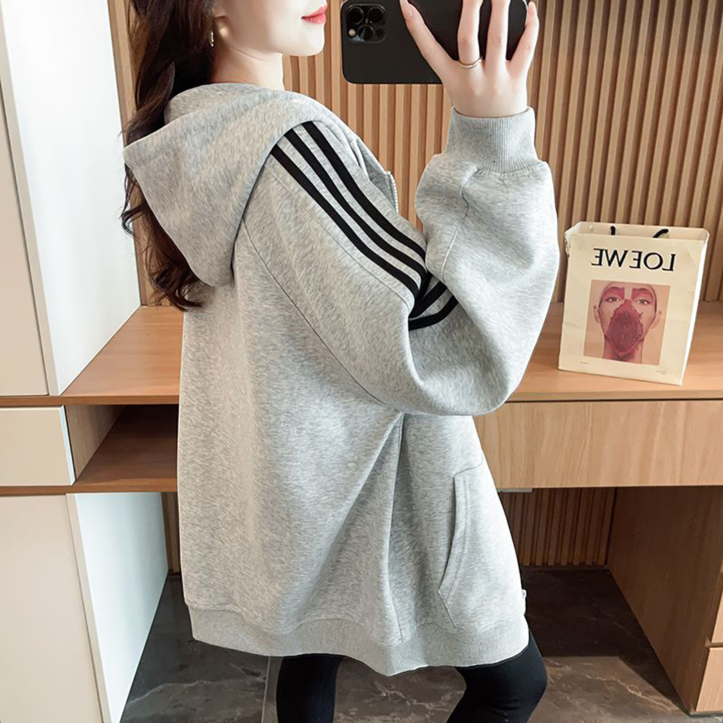 巨好看2025春秋新款 胖mm独特超好看韩系上衣 灰色连帽外套女生大码