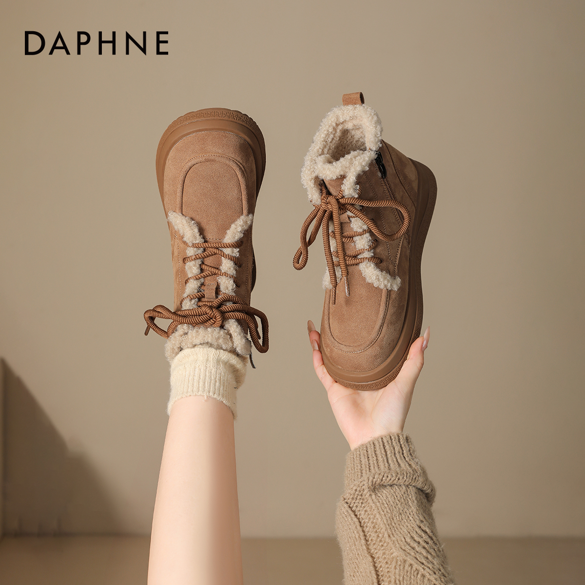 2025新款 冬鞋 女士女款 女鞋 保暖冬季 达芙妮加绒加厚系带雪地靴棉鞋