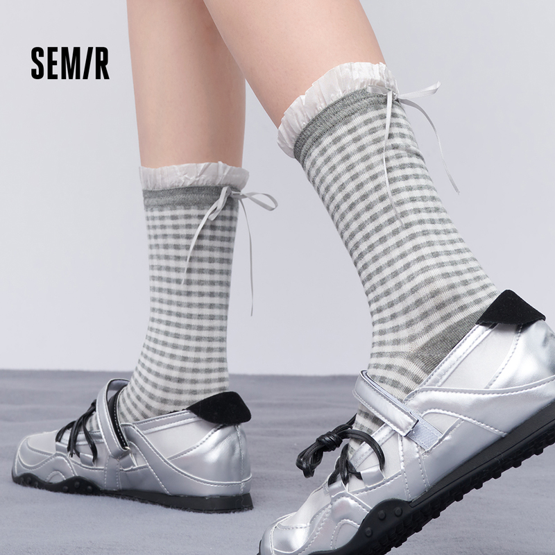 女生中筒袜可爱甜美韩版 森马女士袜子秋冬季 花边格子棉袜2025新款