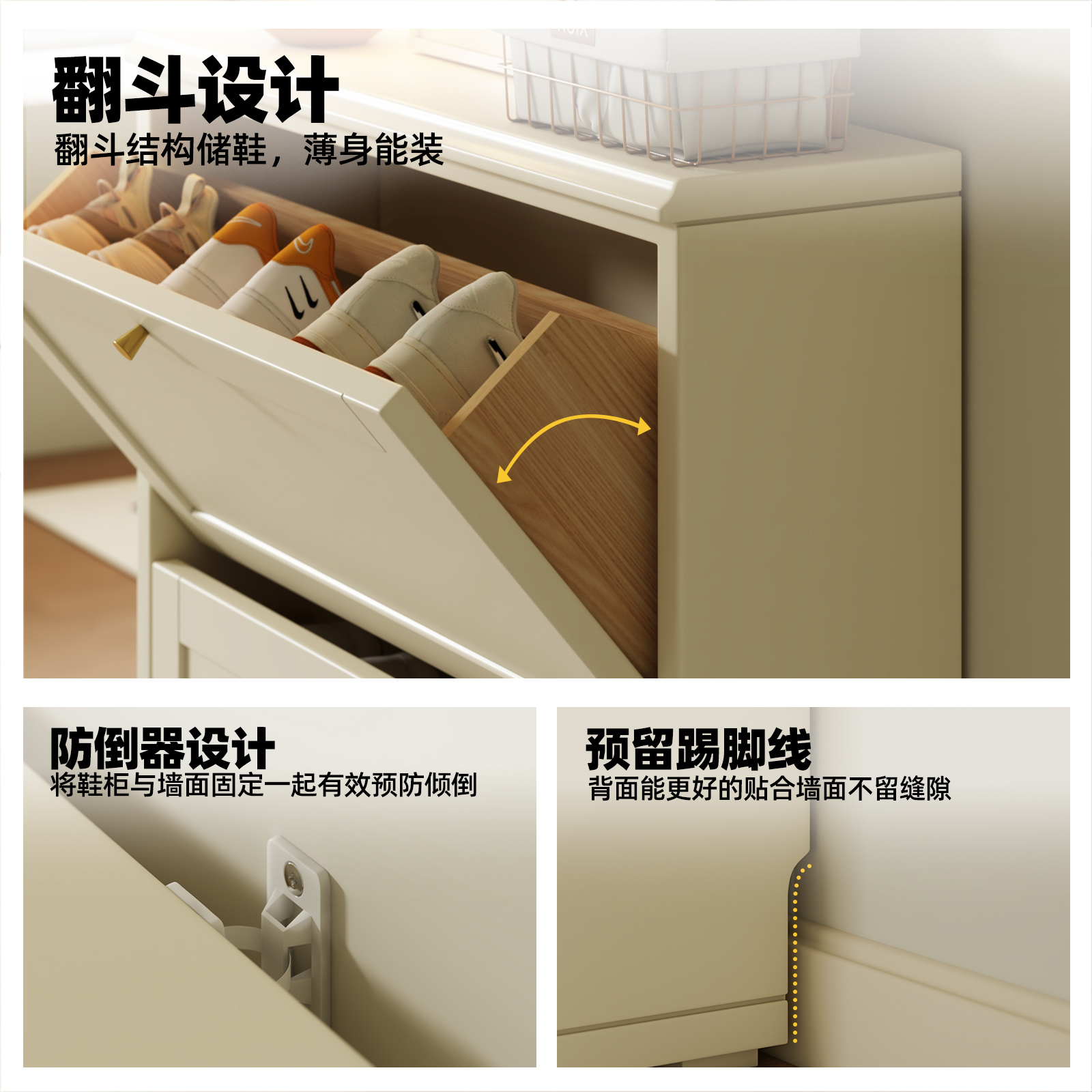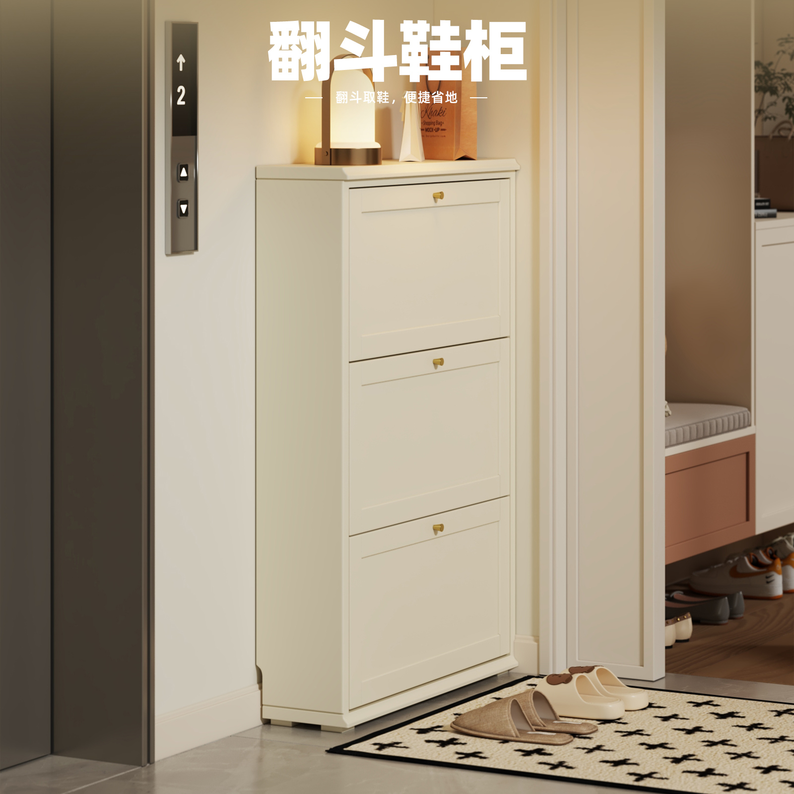 超薄鞋 柜门口家用收纳柜一体靠墙实木极窄翻斗玄关入户柜子高级感