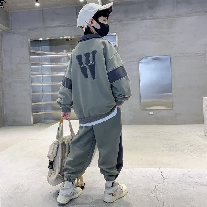 洋气儿童酷帅卫衣运动服春秋款 2025新款 大童炸街衣服 套装 男童春装