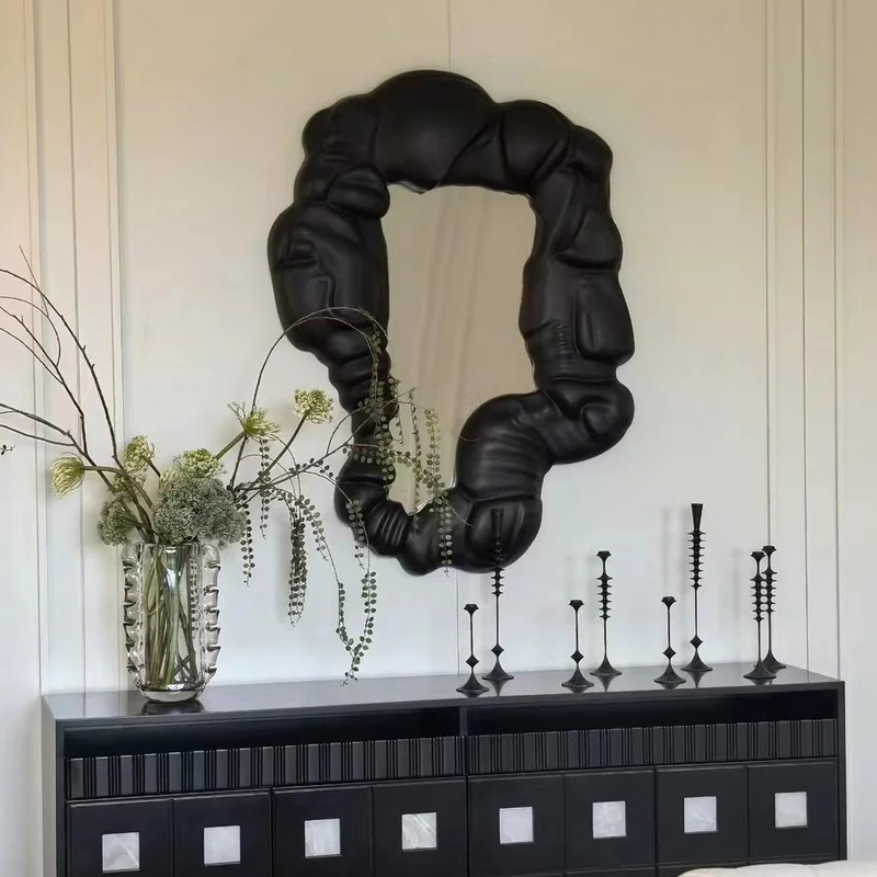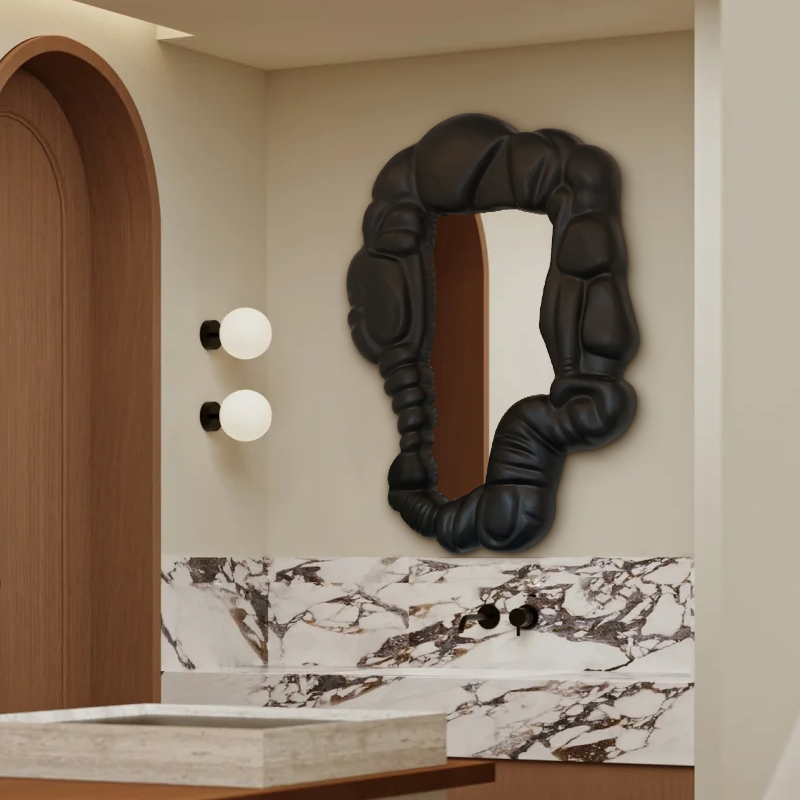 北欧不规则led智能浴室镜侘寂风设计艺术装 饰镜异形梳妆台化妆镜