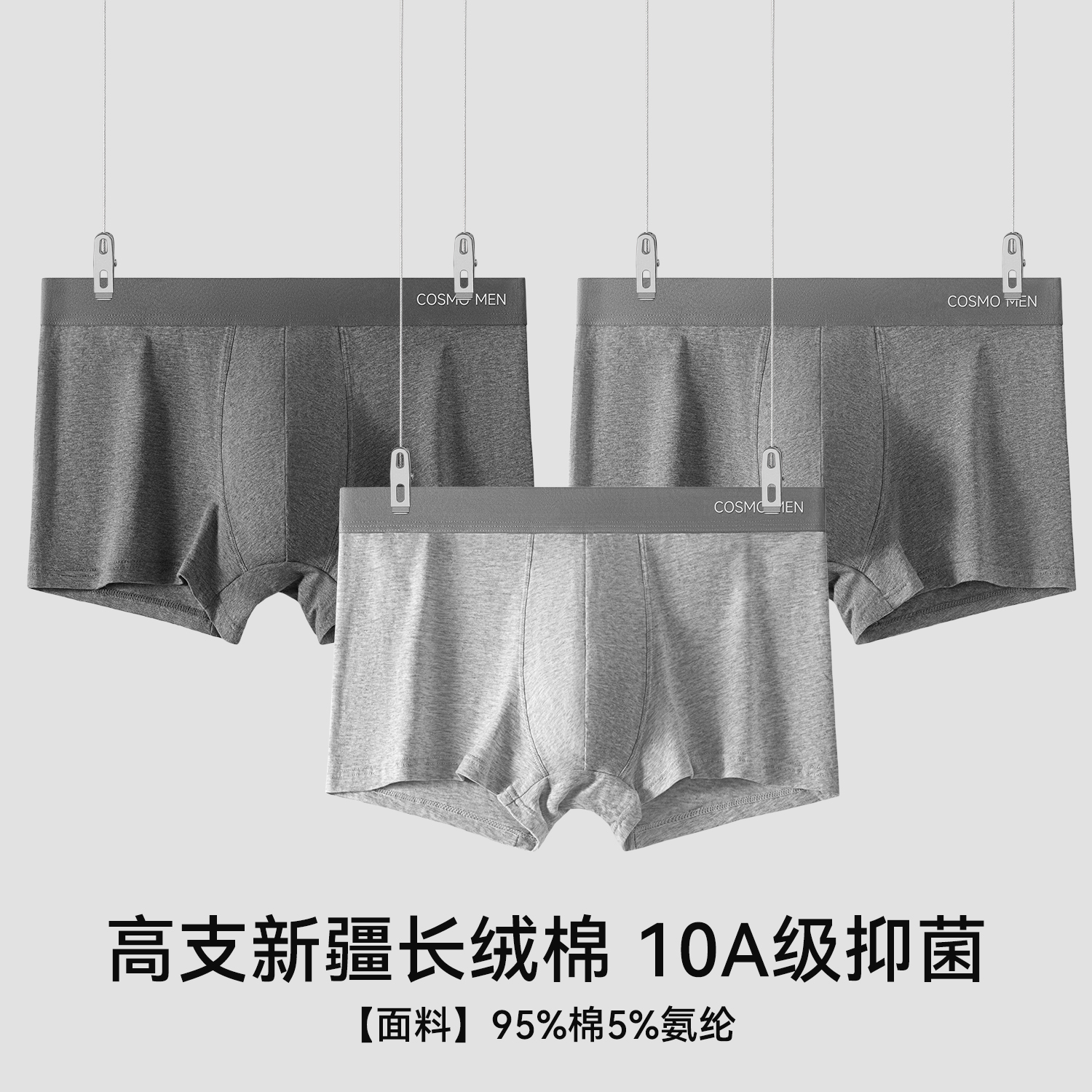衩四角短裤 3件 纯棉透气裆裤 男士 男生 蕉内银皮300S平角内裤