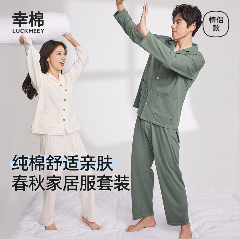 居家休闲家居服两件套 男长袖 幸棉睡衣女纯棉家居服套装 情侣春秋款