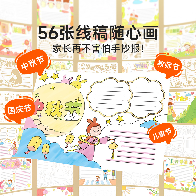 时光学手抄报模板小学生模版 大全15分钟搞定教师节中秋节国庆节儿童a4纸线稿绘画纸校园黑板报节日素材万能神器画画读书小报镂空