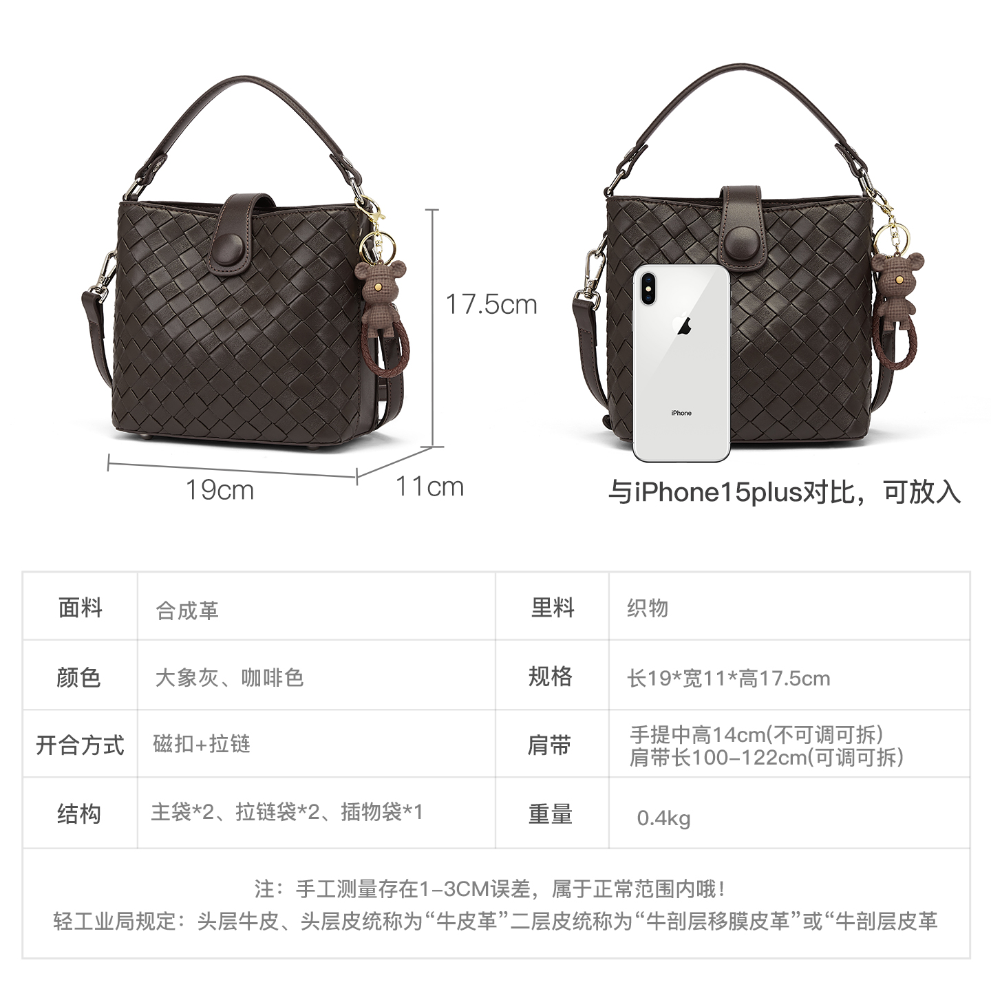 百搭单肩斜挎包通勤手提包 编织水桶包时尚 星期六包包女式 2025新款