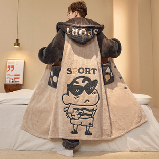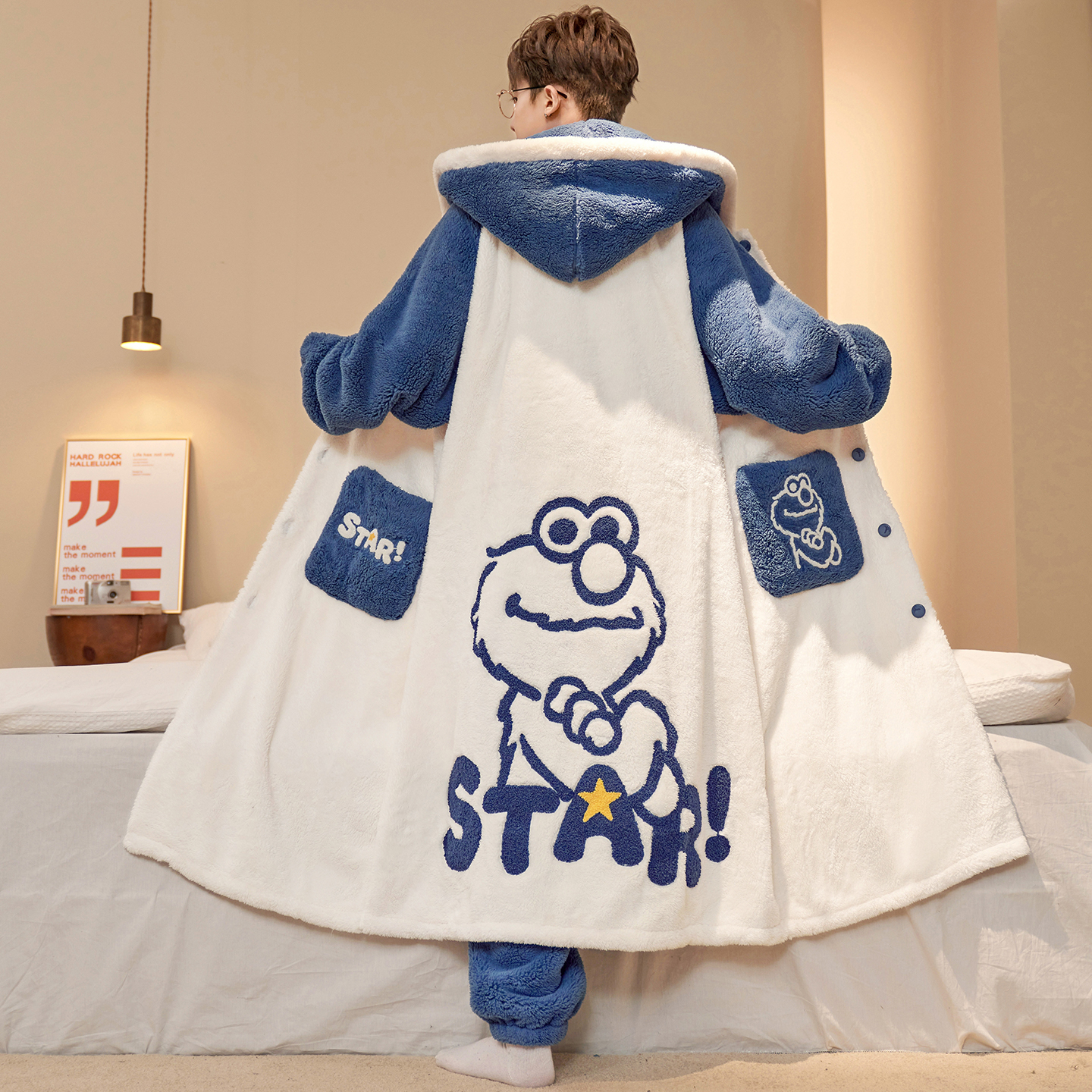 男士 加厚加绒青少年大码 浴袍冬天家居服男生 秋冬季 珊瑚绒睡衣男款