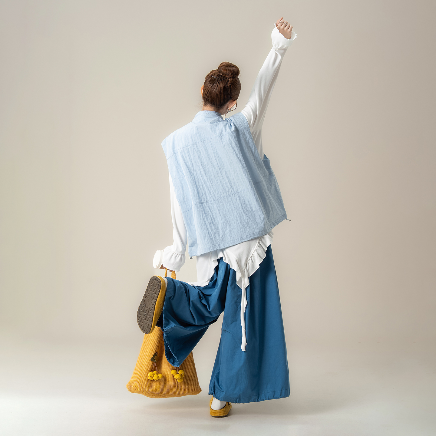 子套装 叠穿不规则花边T恤阔腿裤 新款 蓝色日系复古马甲背心女秋季