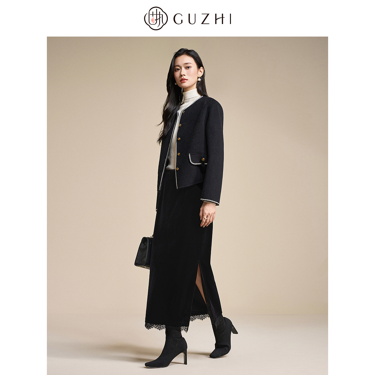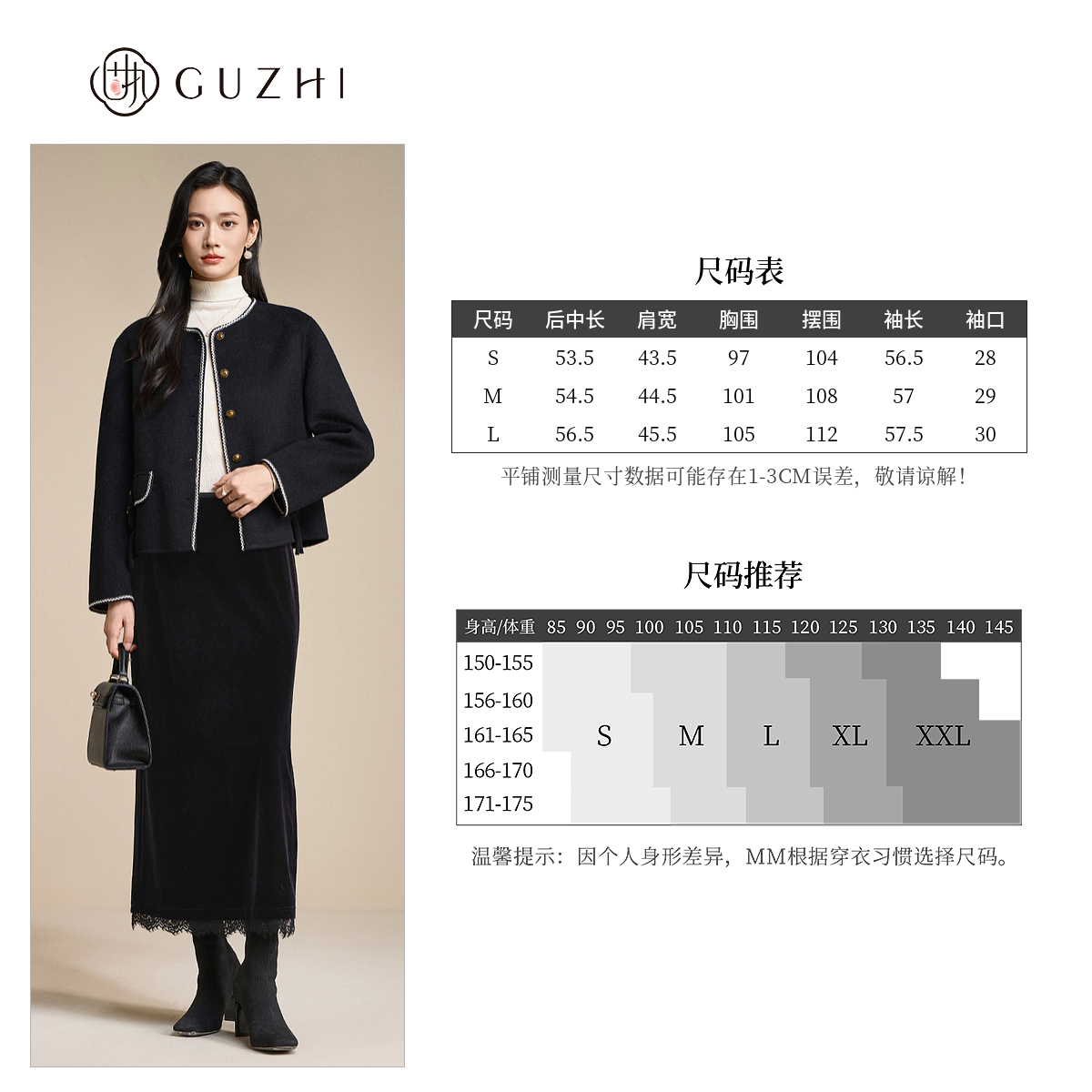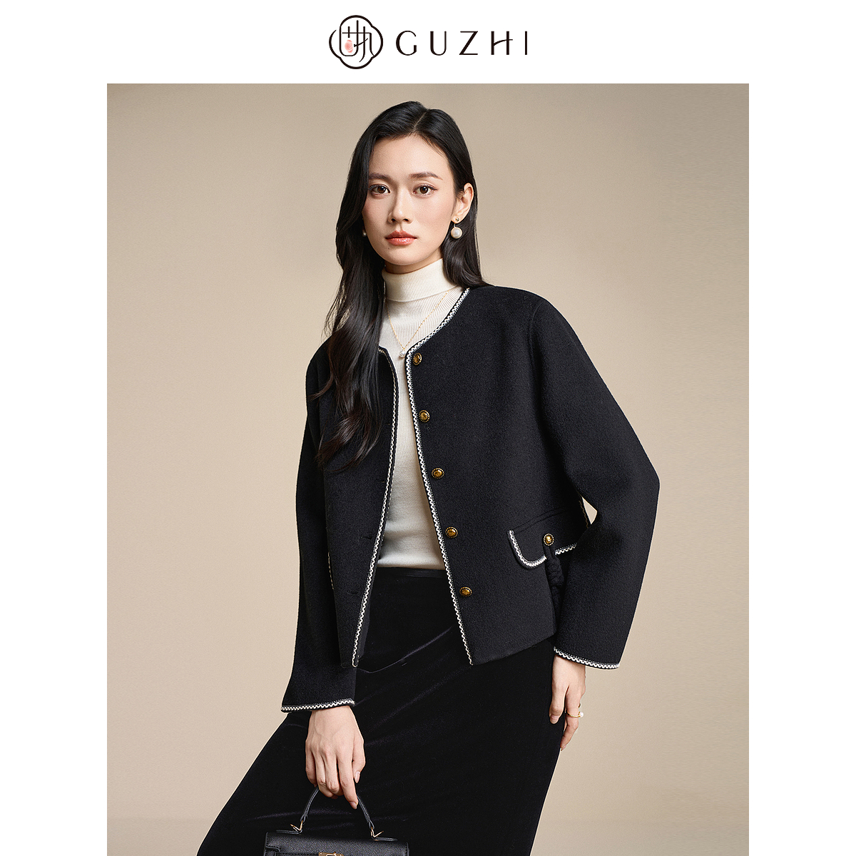 外套女装 固执2025秋冬新款 双面毛呢短款 气质香风圆领长袖 法式