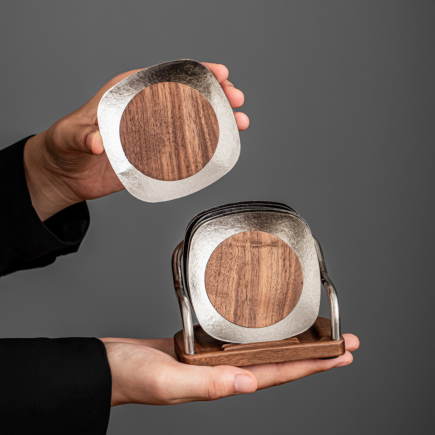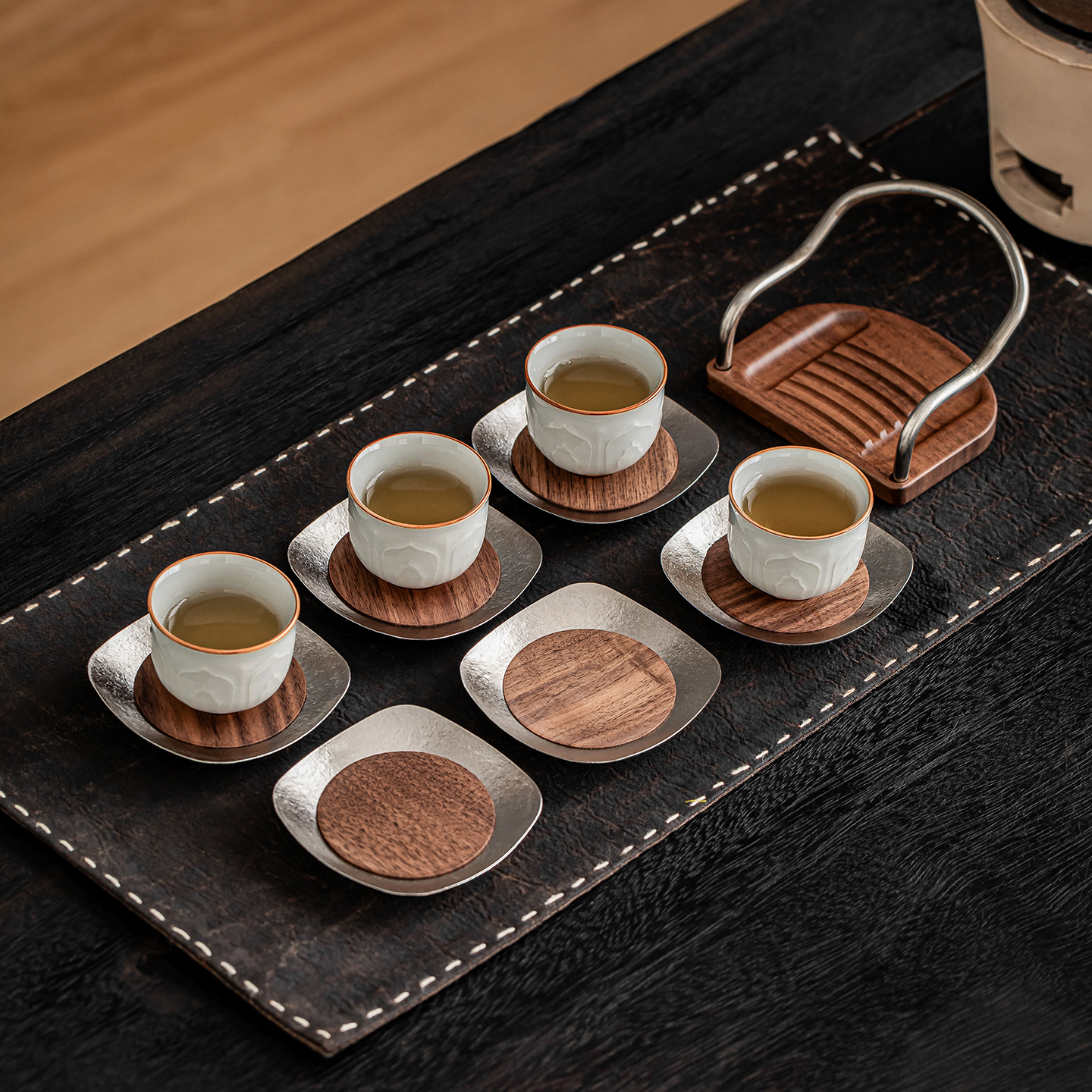四方钛镶木躺椅杯垫底座家用高档功夫茶具配件办公室喝茶2025新款