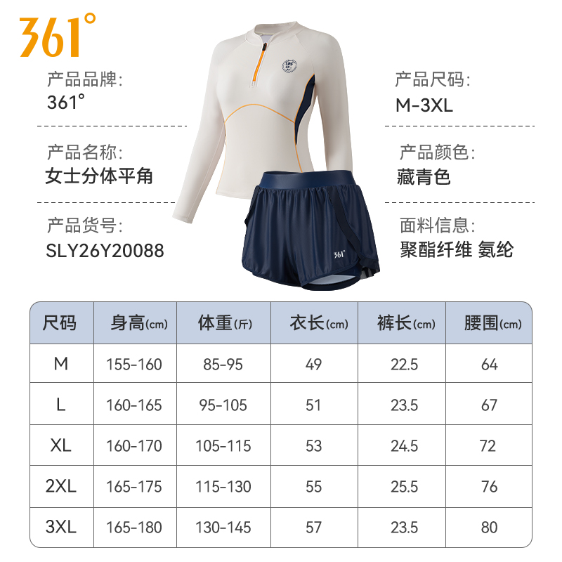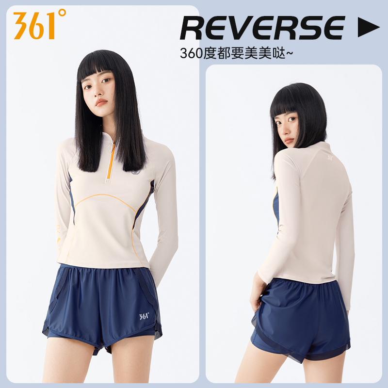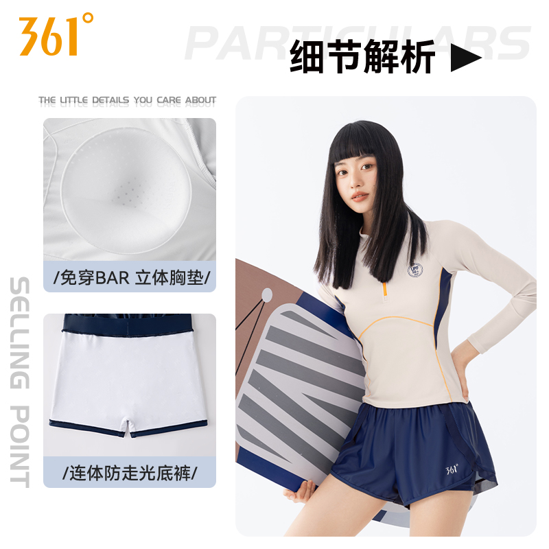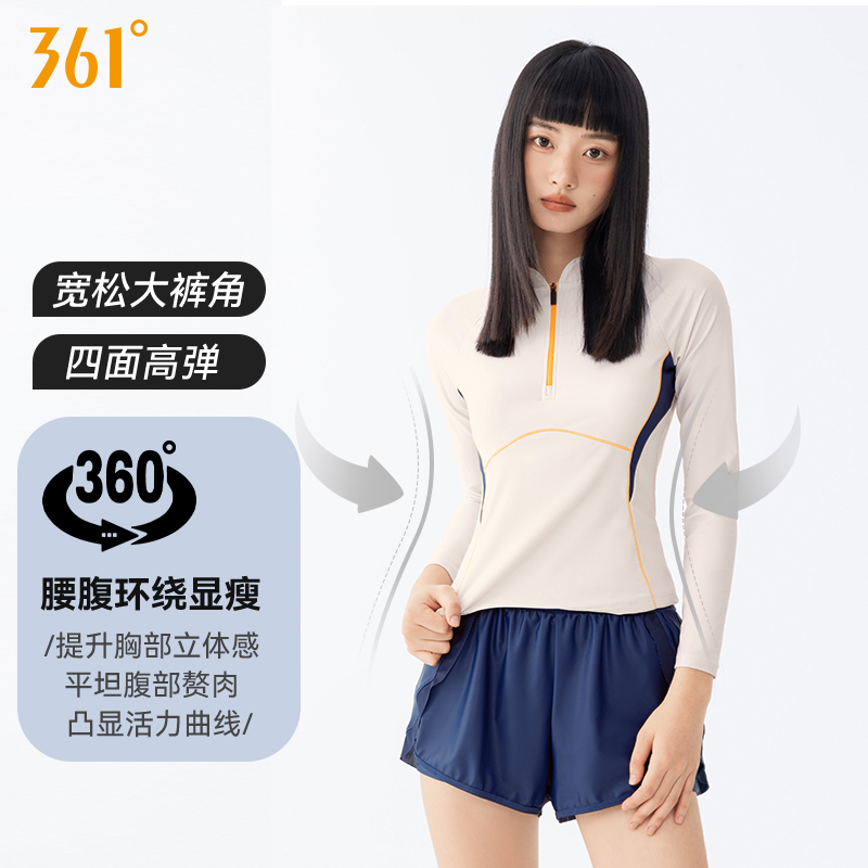 运动游泳衣 学生宽松大码 361度女士分体泳衣长袖 平角成人防晒新款