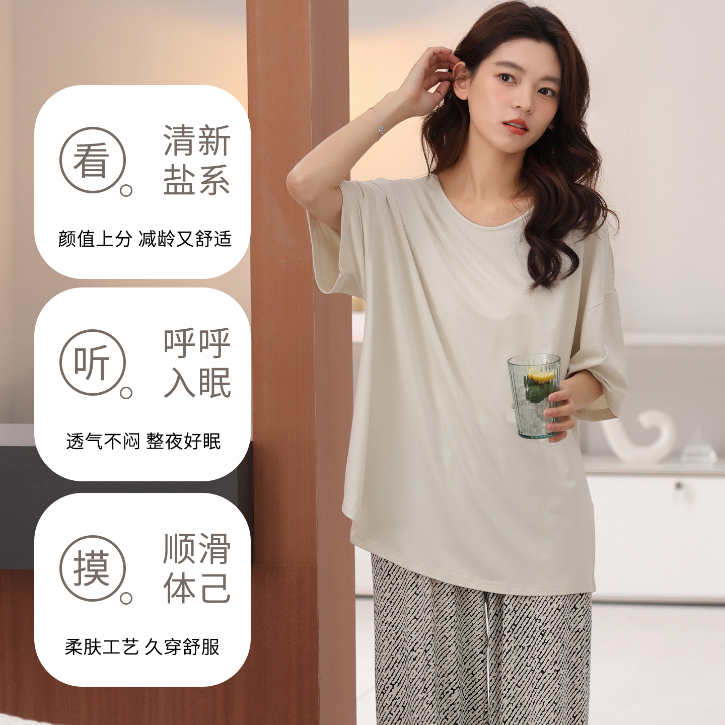 夏季 女士2025新款 纯棉短袖 女套装 休闲可爱家居服 长裤 芬腾睡衣女款