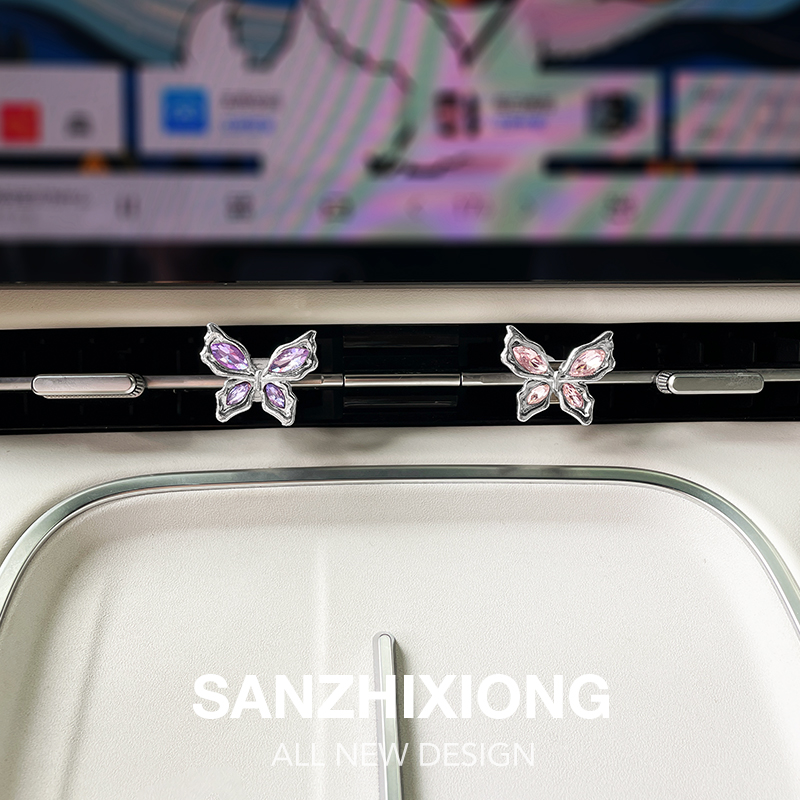 饰夹 饰品汽车空调口小摆件装 蝴蝶汽车出风口装 饰夹创意车载风口装