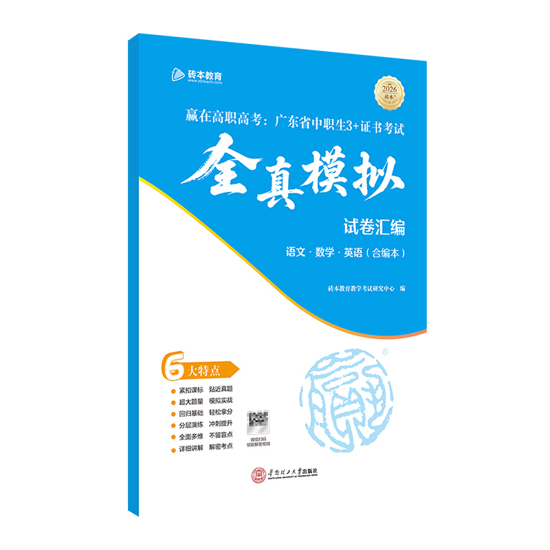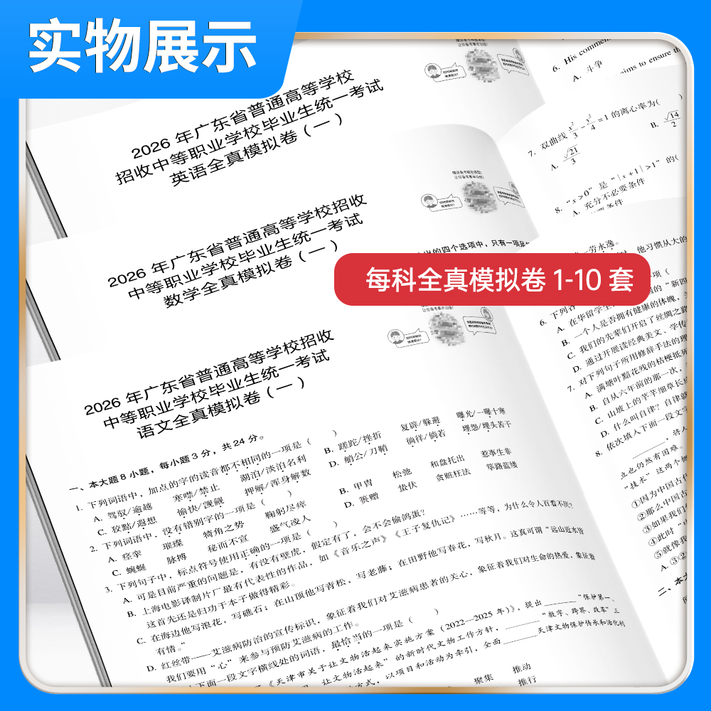 2026版 证书考试合编砖本教育中职菌单招对口升学中专升大专必备资料 广东高职高考全真模拟试卷汇编赢在高职高考语数英中职生升学3