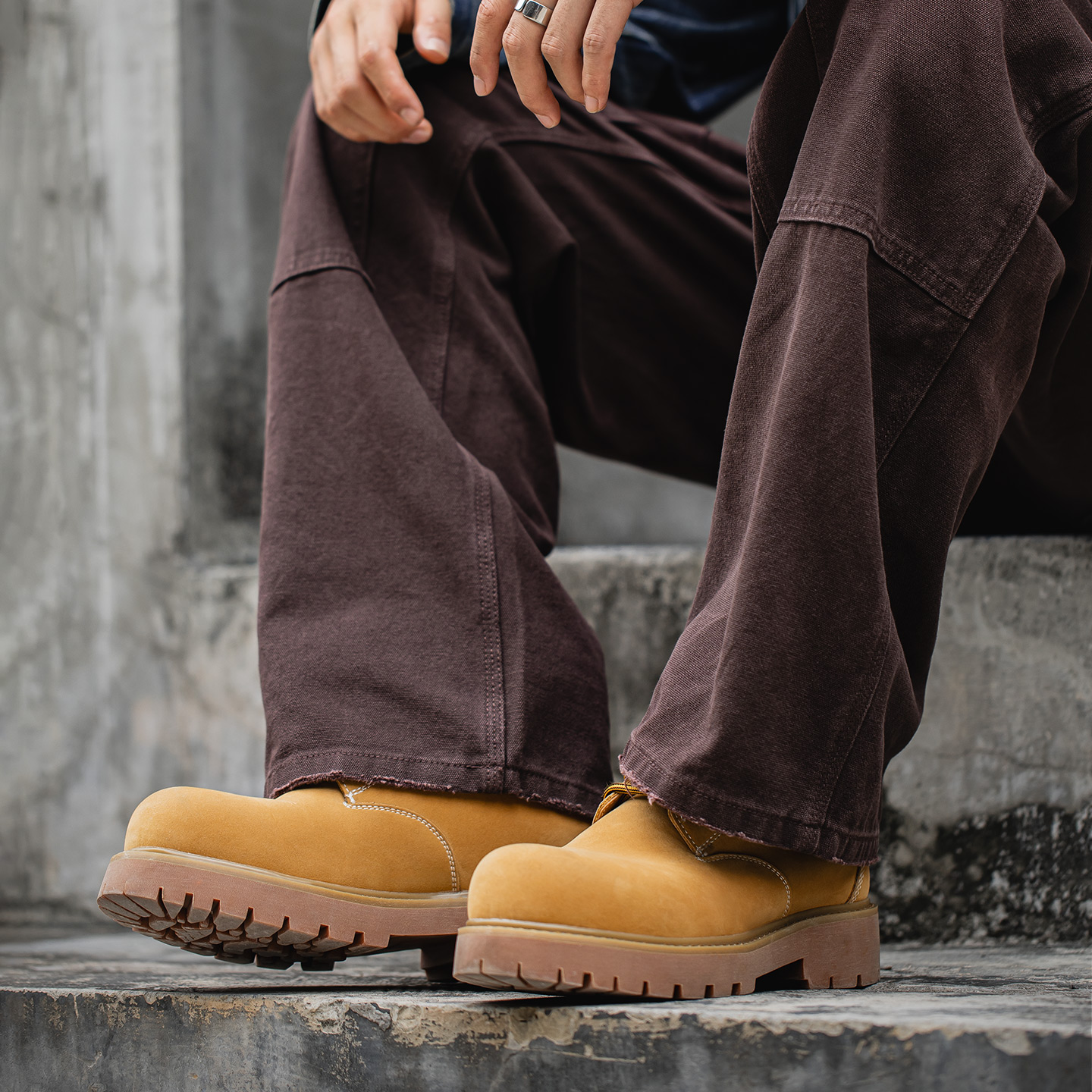 高帮厚底真皮户外工装 秋季 骆驼大黄靴马丁靴男款 靴 王俊凯同款