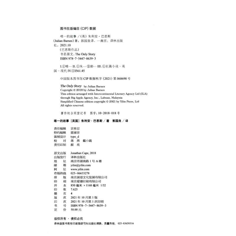 故事 社新华书店正版 英 郭国良译外国小说译林出版 朱利安·巴恩斯著 唯一