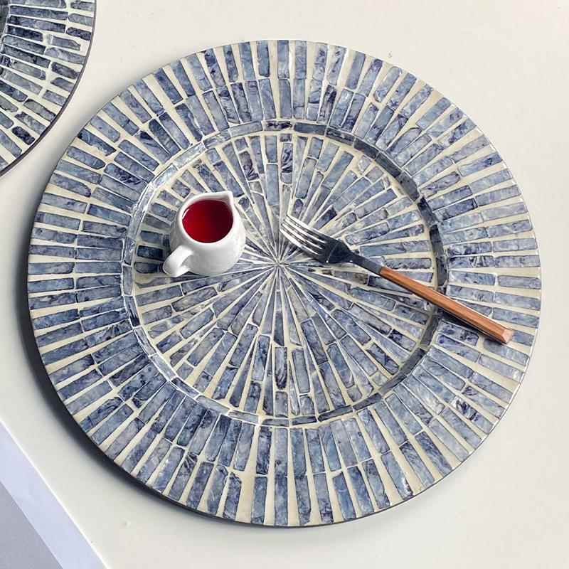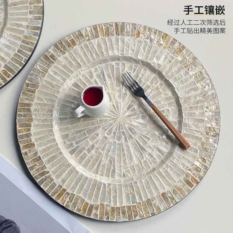 天然贝壳餐垫西餐厅专用圆形大号东南亚波西米亚风格 防水防油免洗