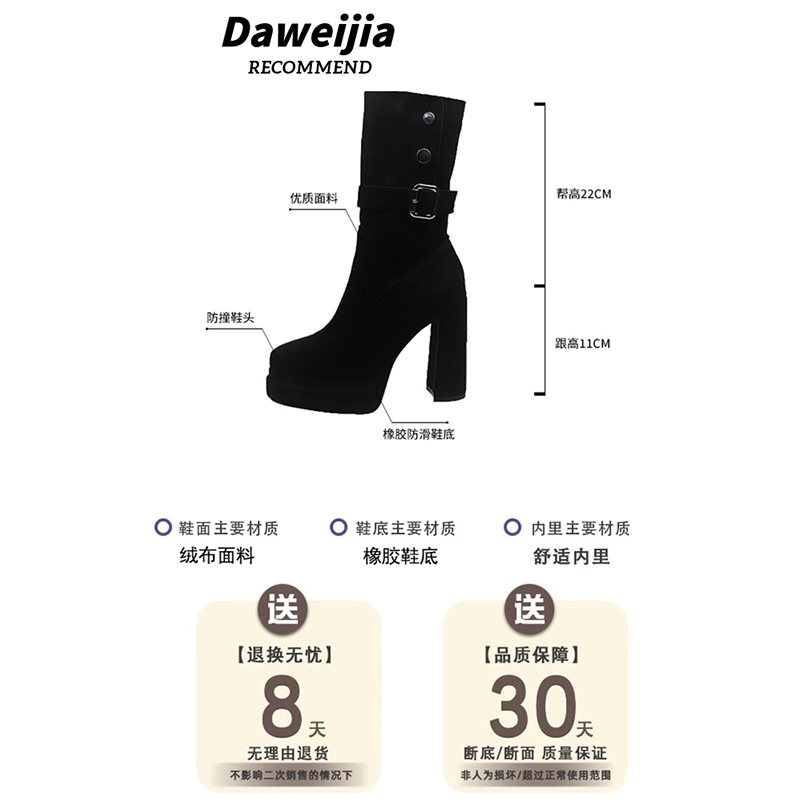 小众复古风粗跟显瘦短靴女2025新款 百搭增高小个子高跟中筒靴 秋季