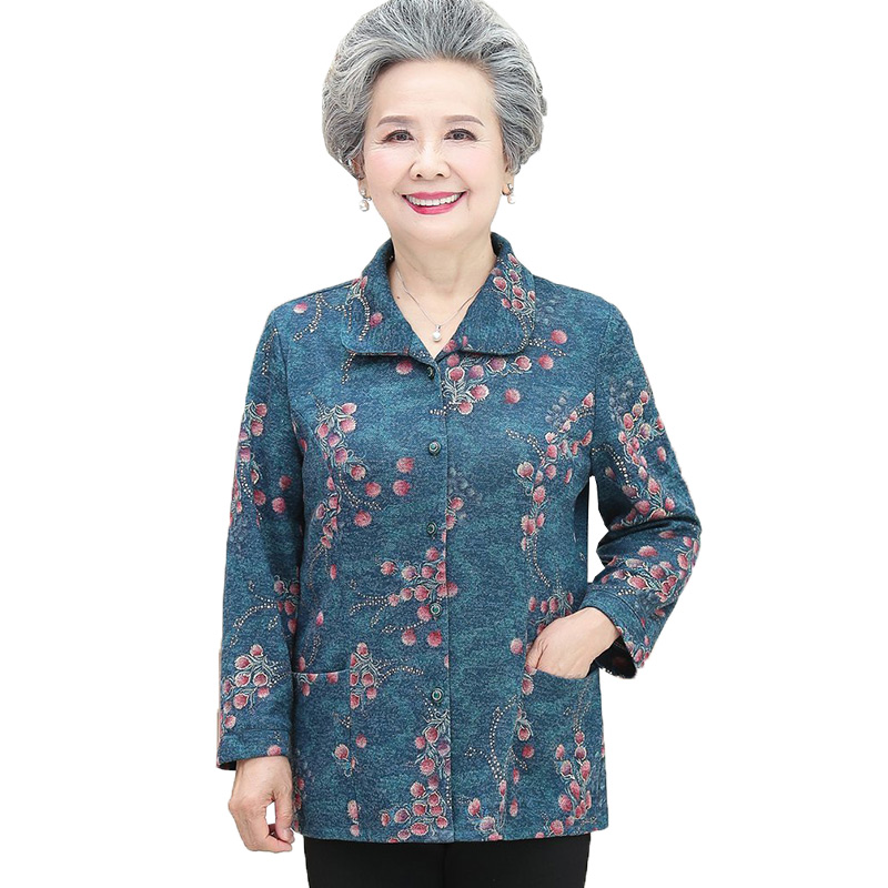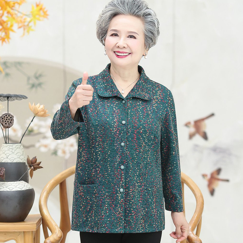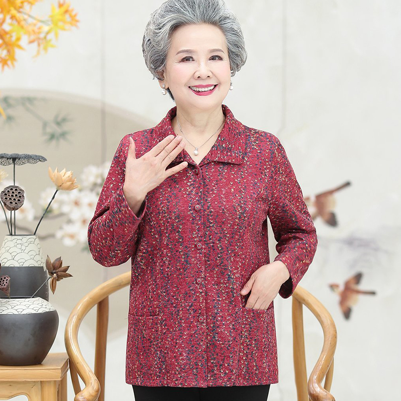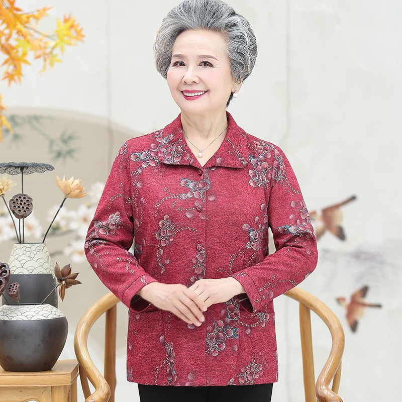 女款 上衣老太太妈妈衬衣套装 衬衫 奶奶长袖 老人春秋薄款 中老年夏装