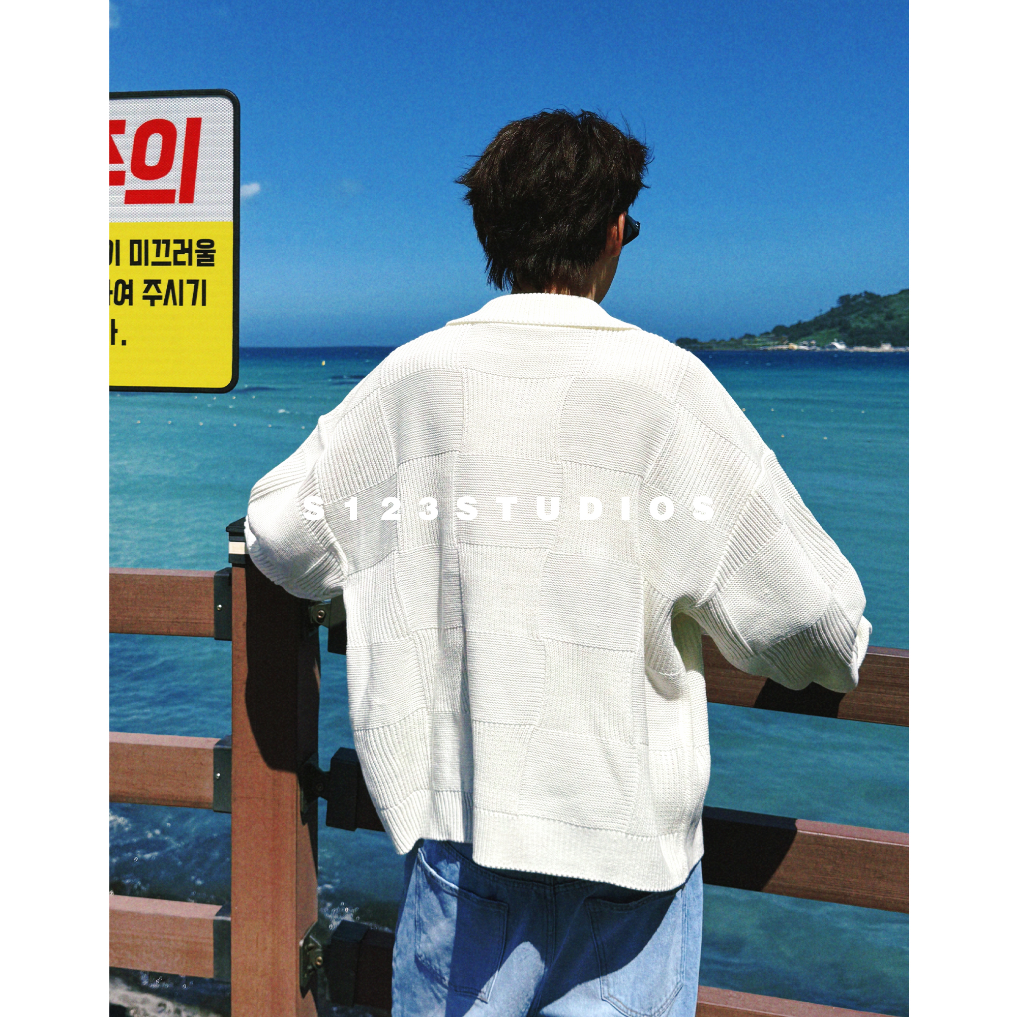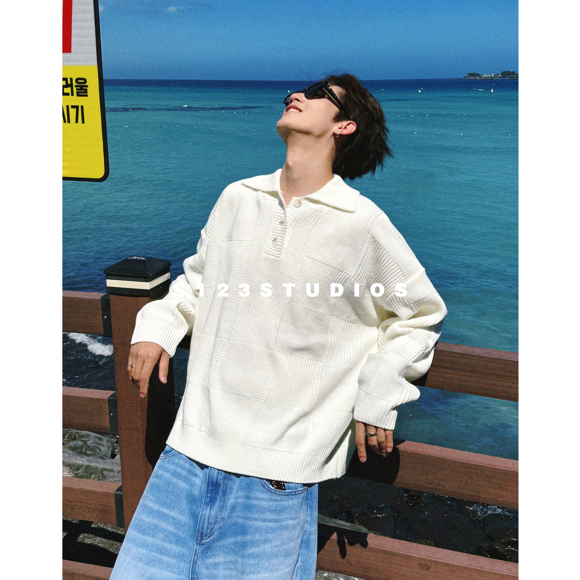 S123 潮 老钱风简约纯色高级感POLO领毛衣慵懒宽松休闲情侣针织衫