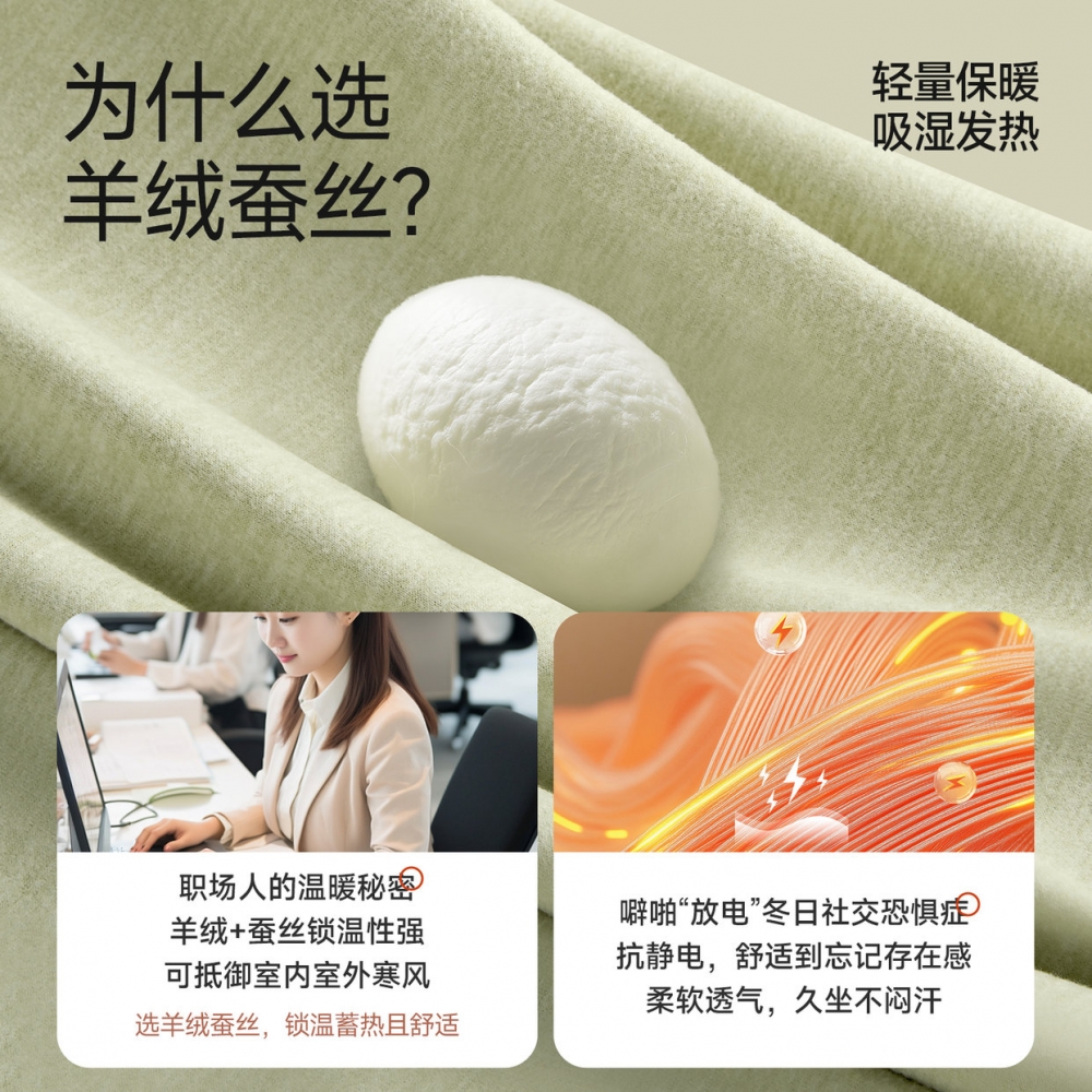 加绒加厚士发热羊绒蚕丝冬季 2025新款 女士内穿保暖裤 猫人德绒秋裤