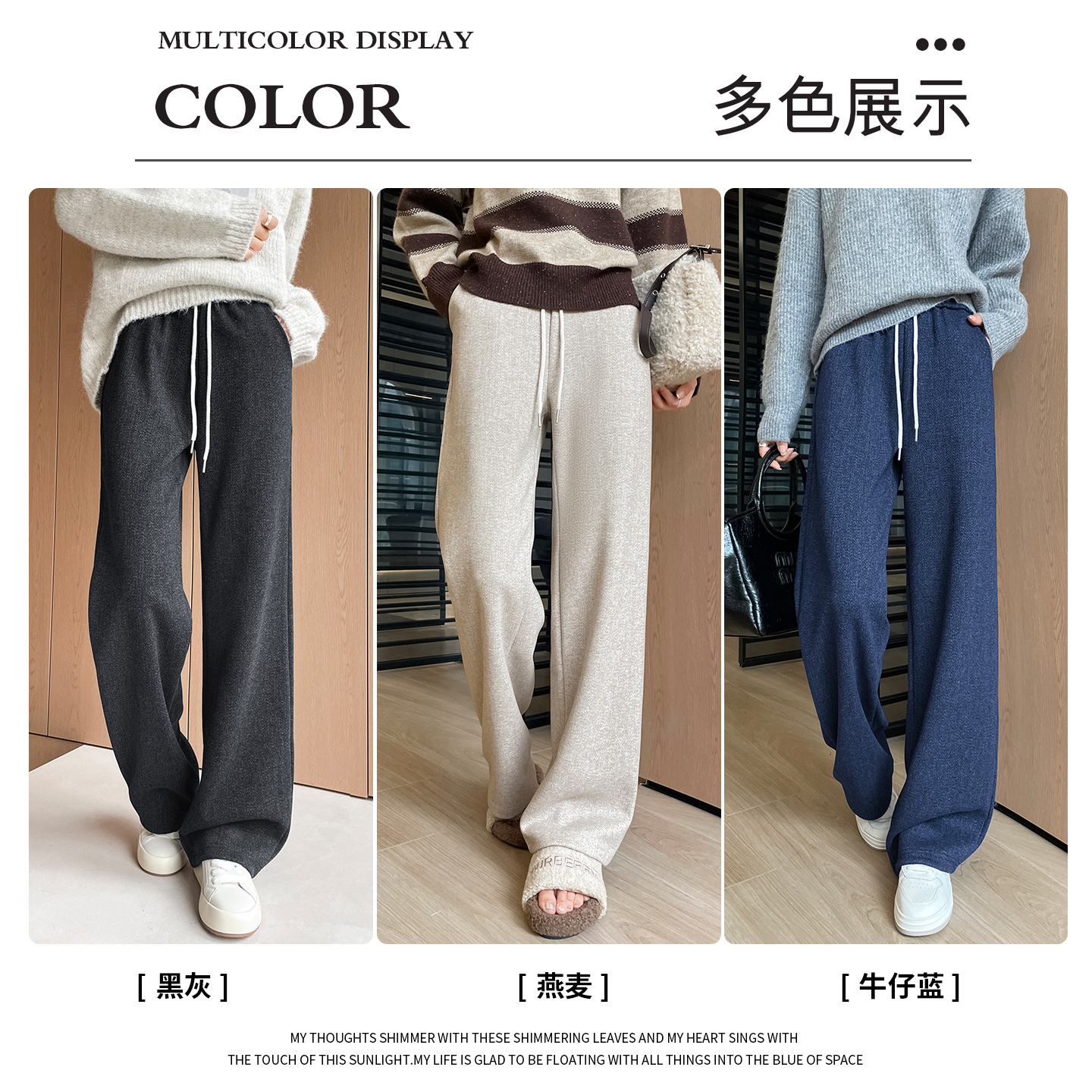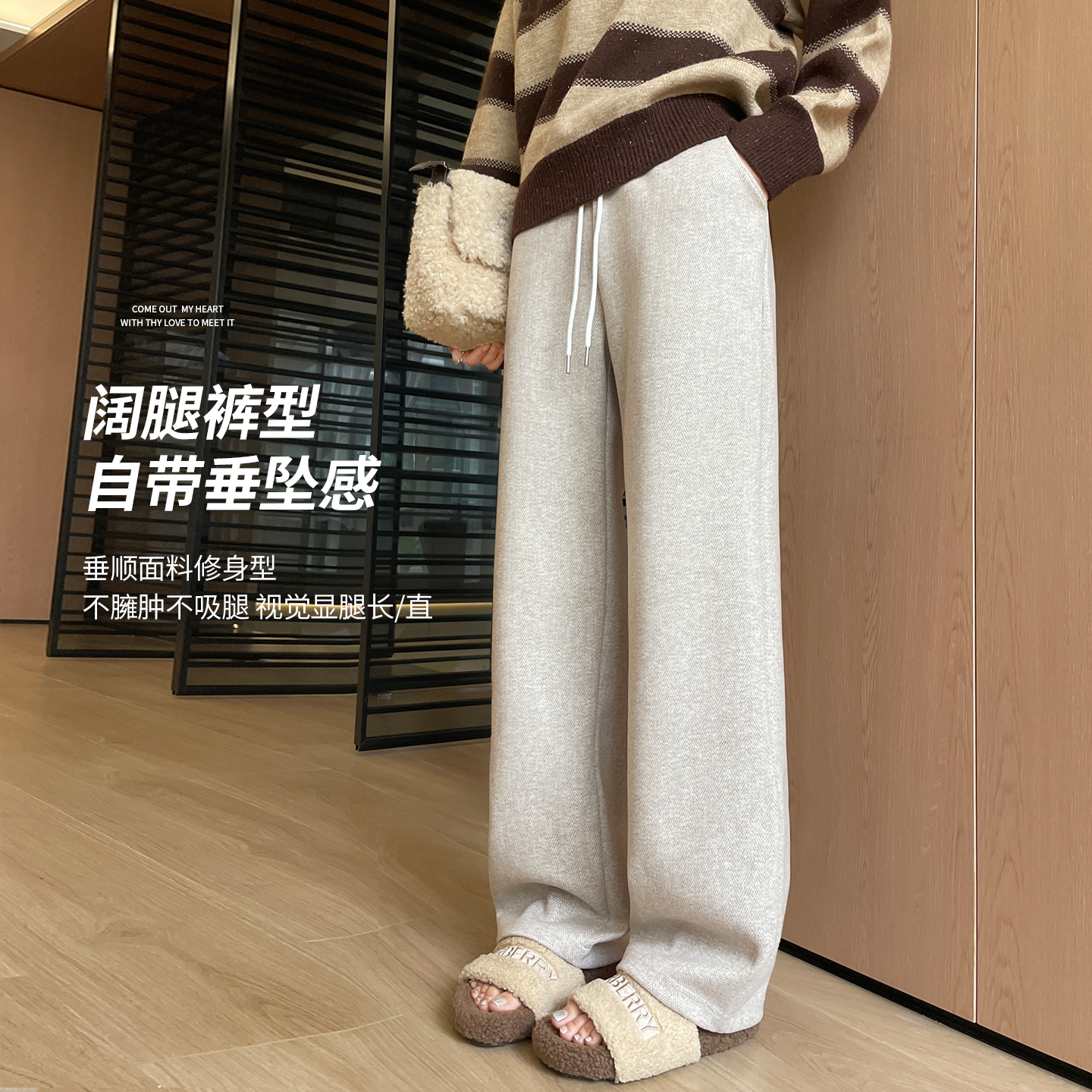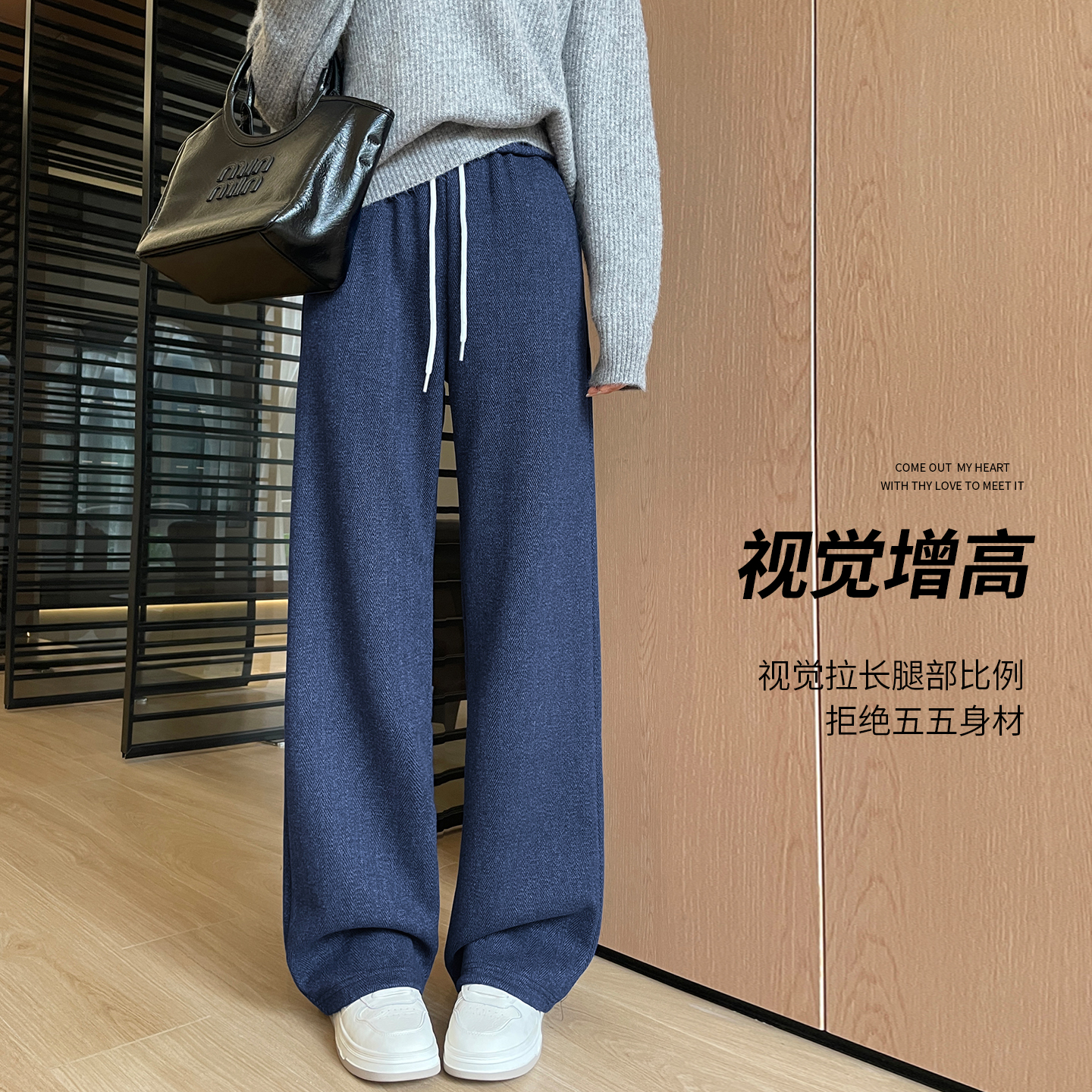 直筒垂坠感休闲裤 人字纹毛呢阔腿裤 窄版 小个子2025新款 子 女秋冬季