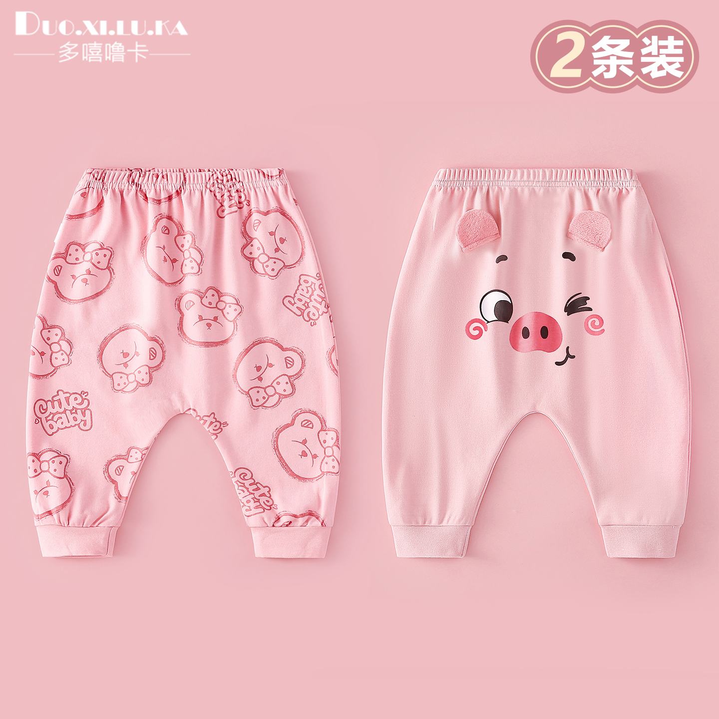 宝宝束脚长裤 春秋男女宝宝外穿大屁屁裤 纯棉A类婴儿大PP裤 2件装