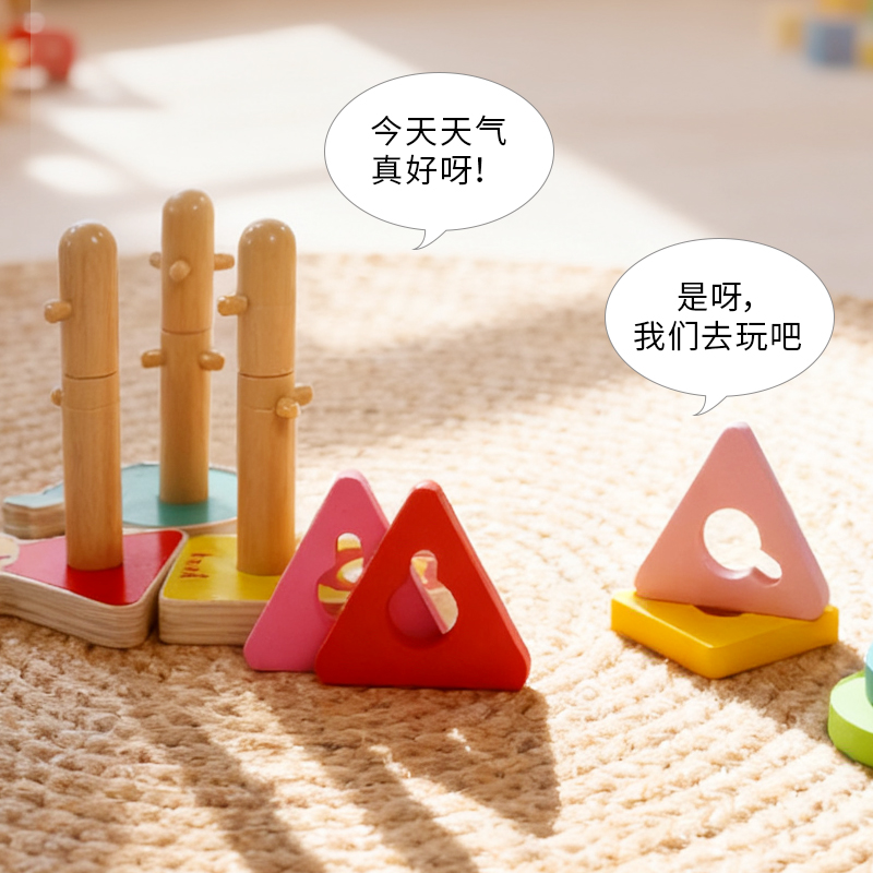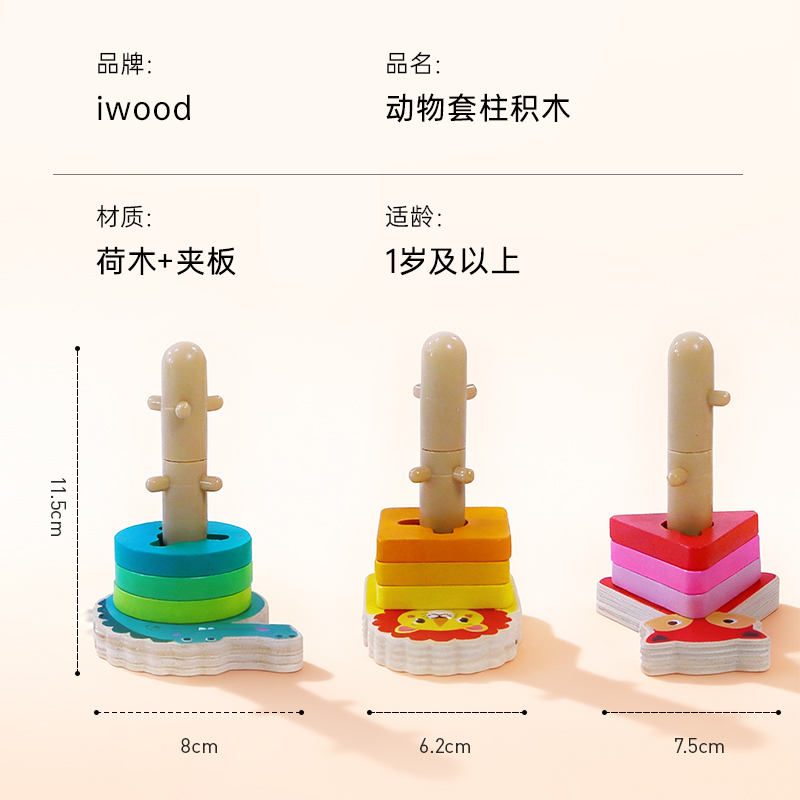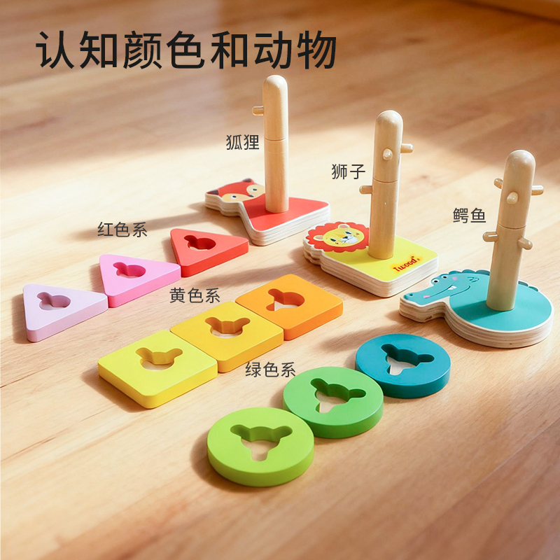 木玩世家套柱几何形图案配对益智玩具宝宝精细认知木质玩具男女孩