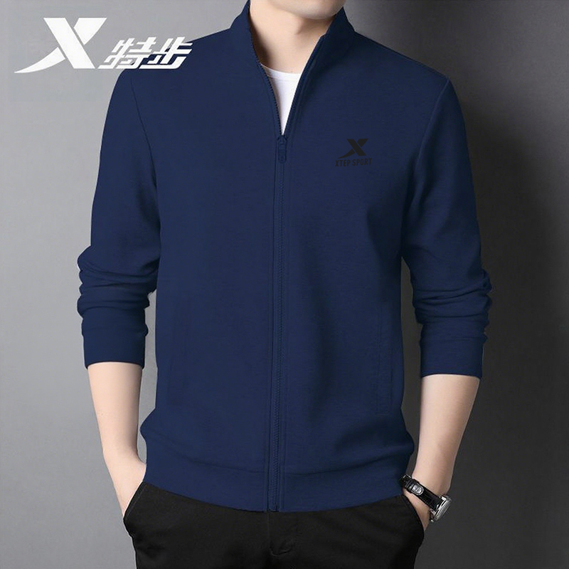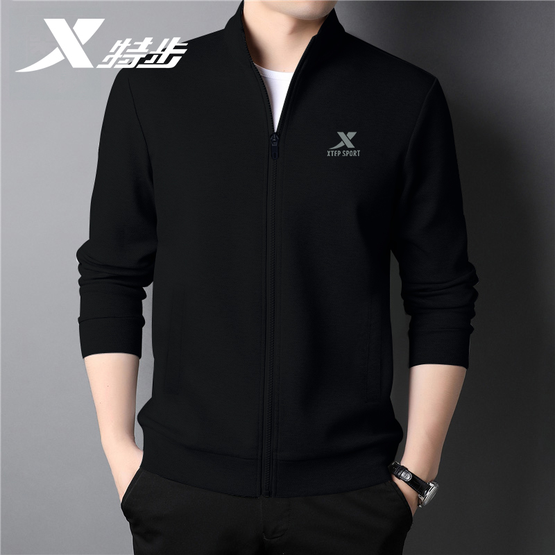 针织上衣立领夹克开衫 男装 卫衣休闲加绒运动服 新款 特步外套男秋季