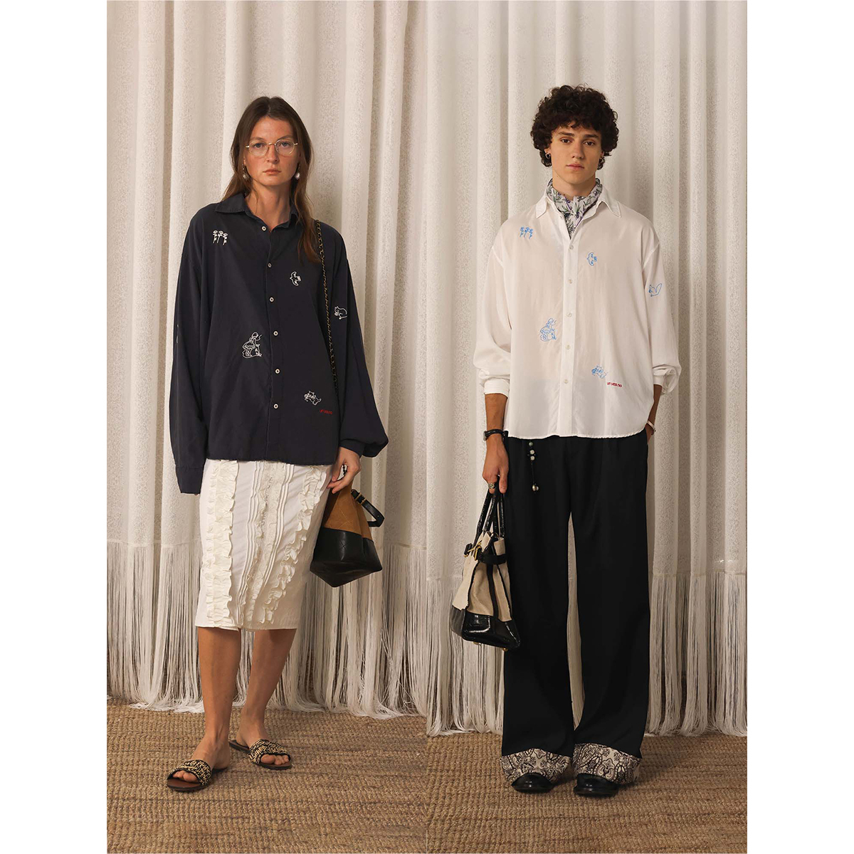 童趣牧野满绣定位休闲长袖 Unvesno 衬衫 100%莱塞尔