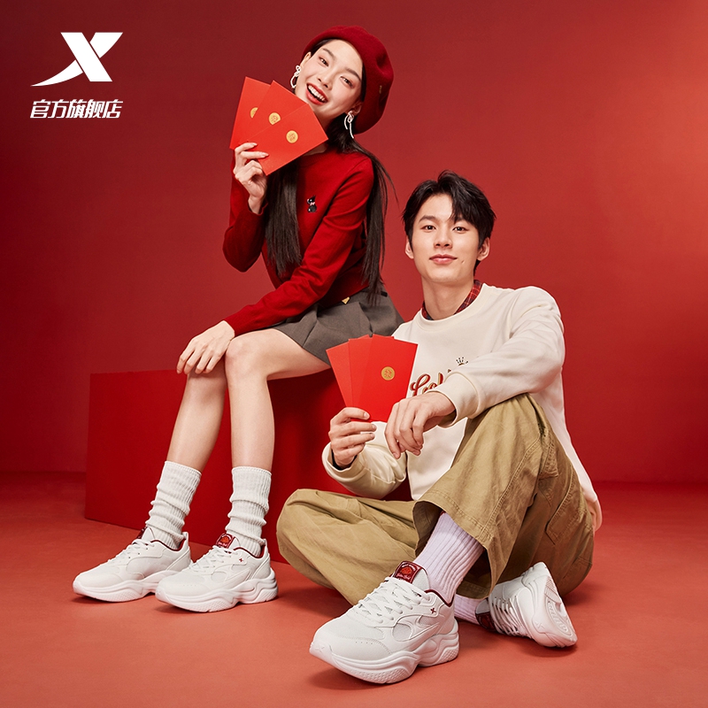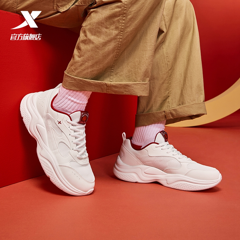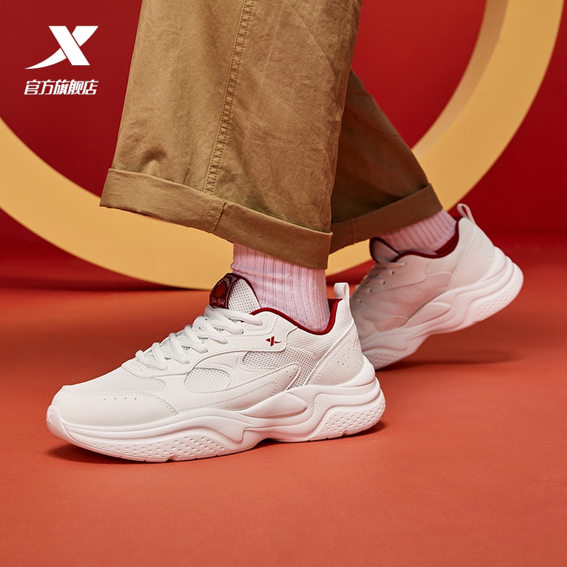 网面透气运动鞋 特步星尘休闲鞋 轻便百搭厚底增高女鞋 2025秋季 男鞋