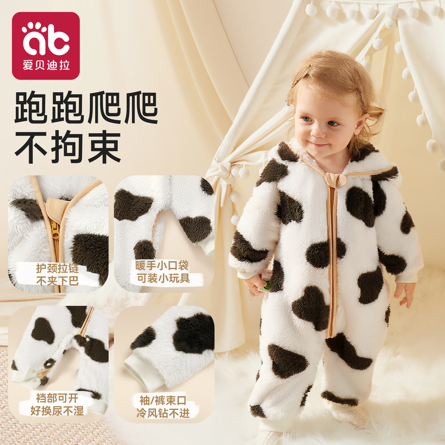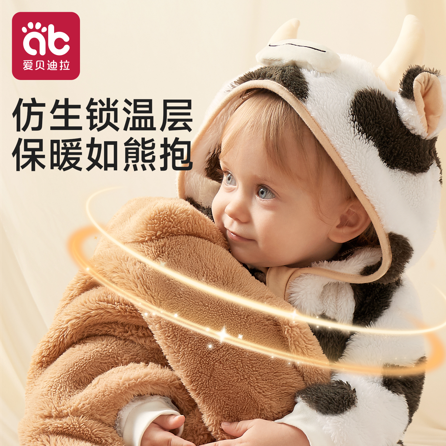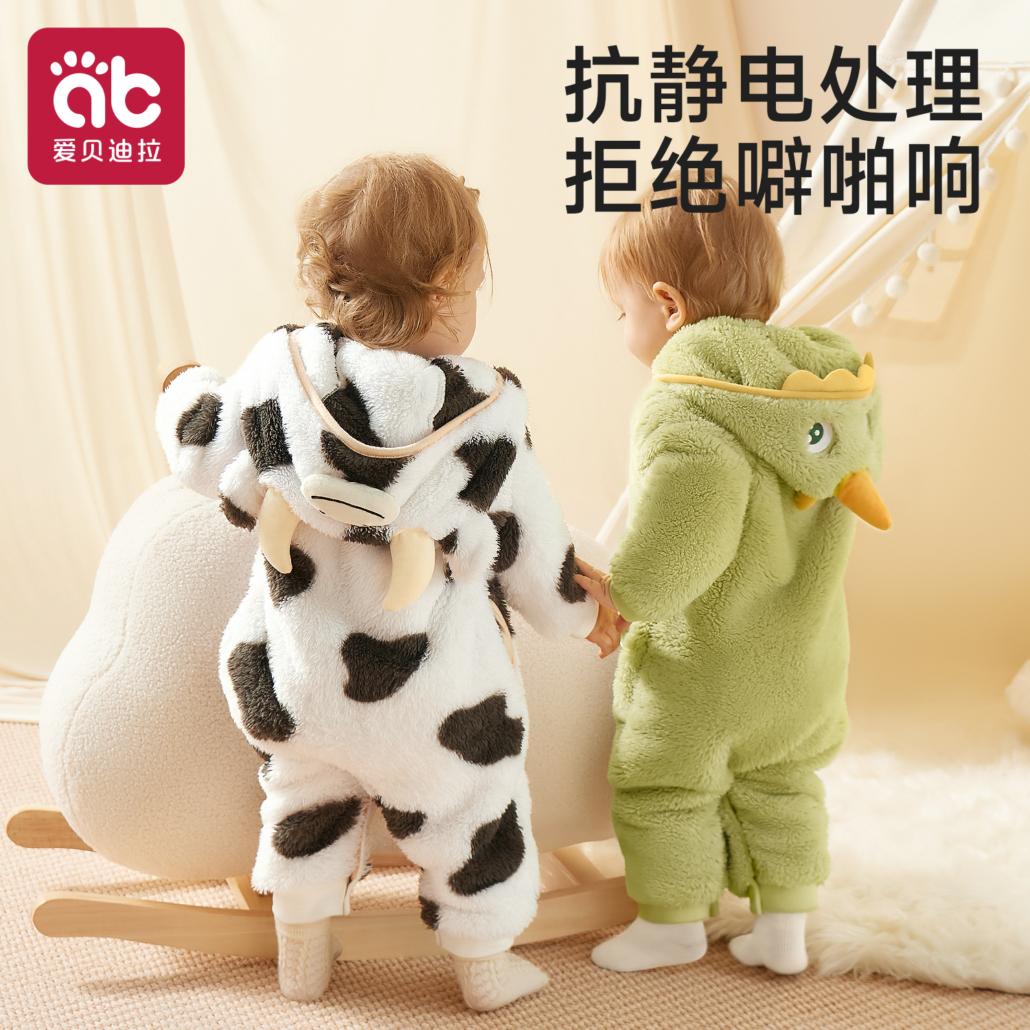 婴儿连体衣秋冬宝宝衣服2025新款 外出可爱加厚抗静电珊瑚绒爬爬服