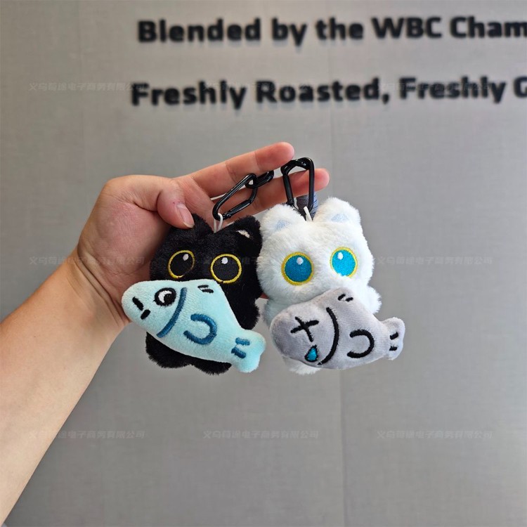 毛绒可可猫鲷鱼烧汽车钥匙扣书包挂件日系软萌公仔挂饰学生小礼品